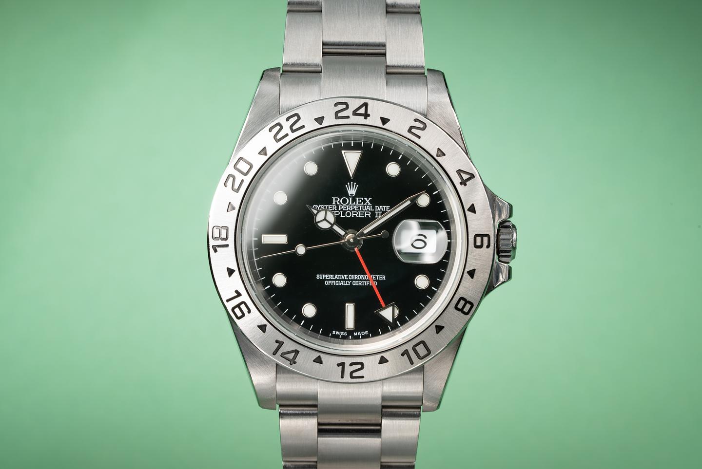 Bracelet: The 13 link oyster bracelet is excellent showing only light stretch for its age. The clasp is stamped with a matching 2004 date code.