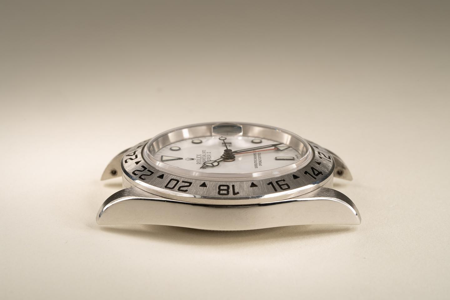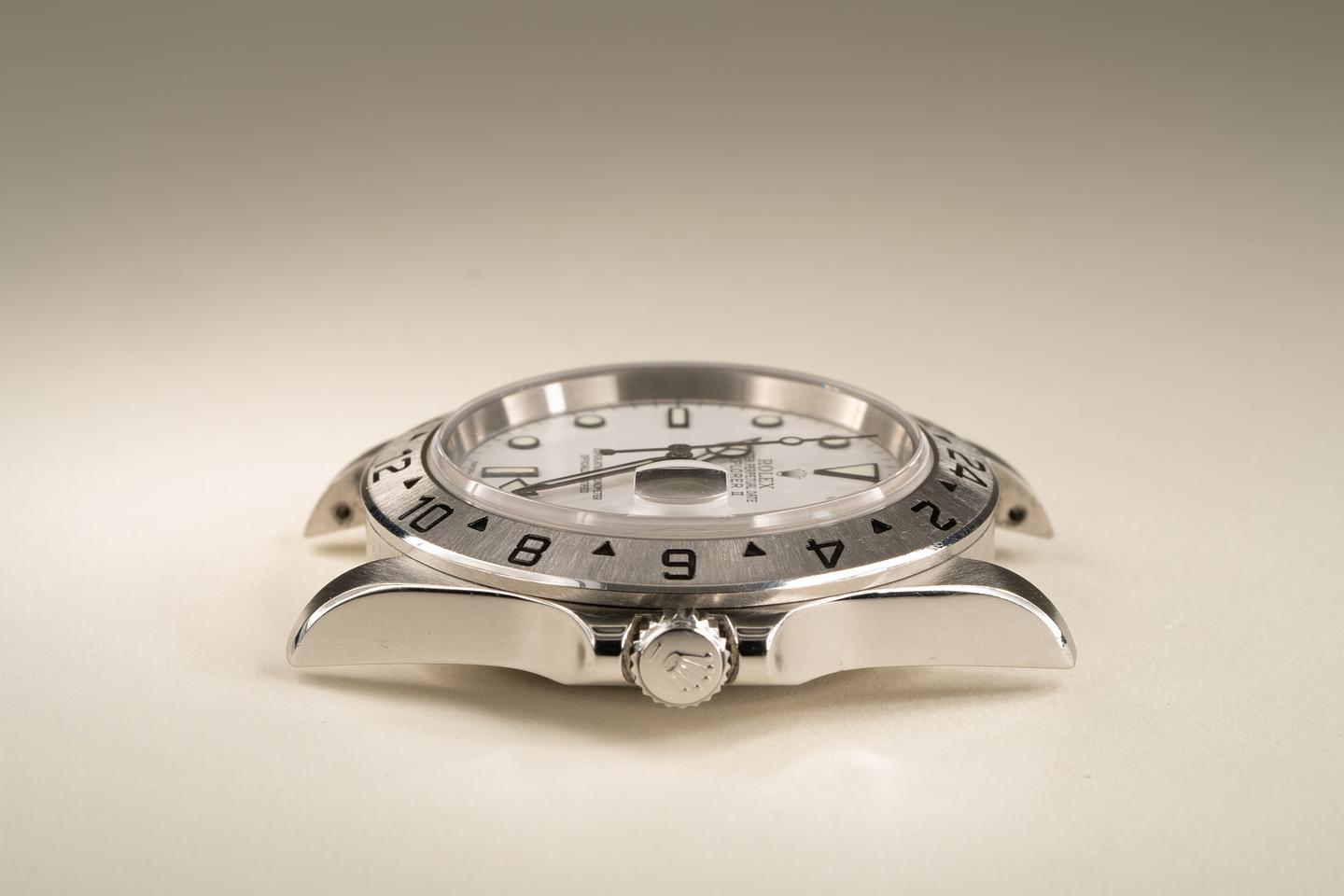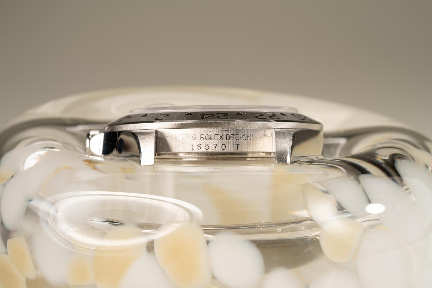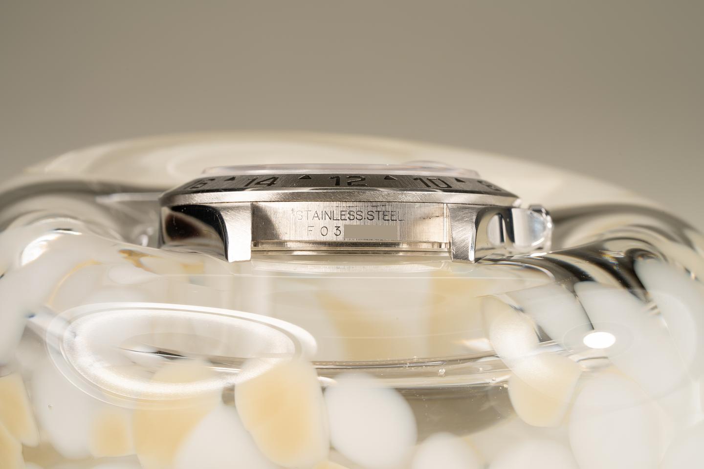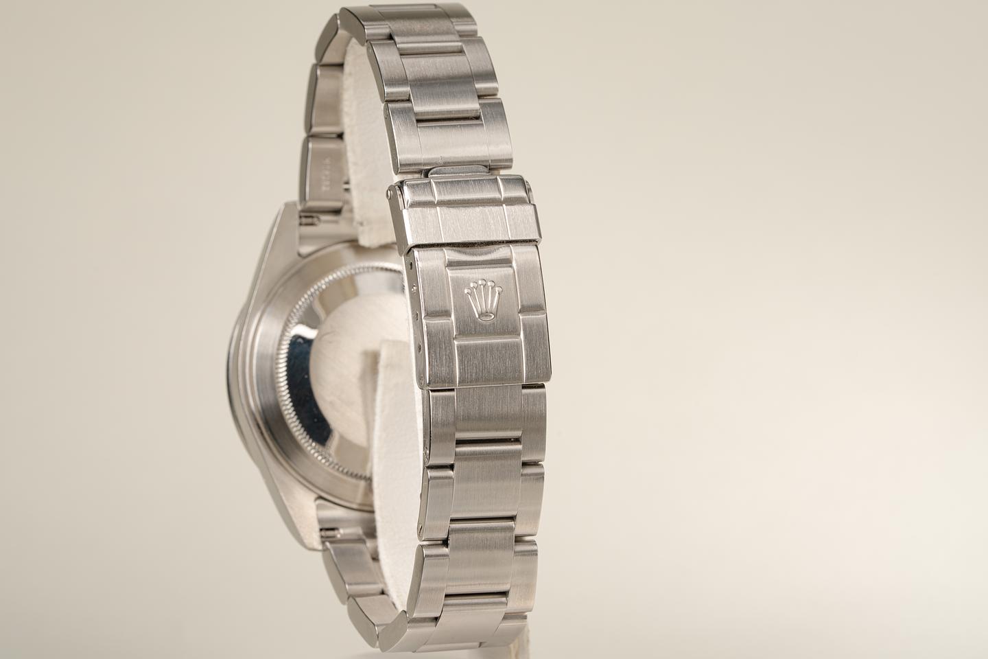 Case: Excellent no holes case that shows very light wear. The stainless bezel is also in excellent condition and retains the factory sunburst finish.