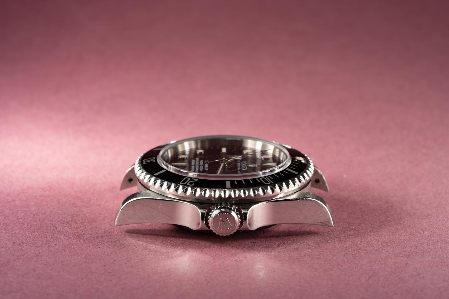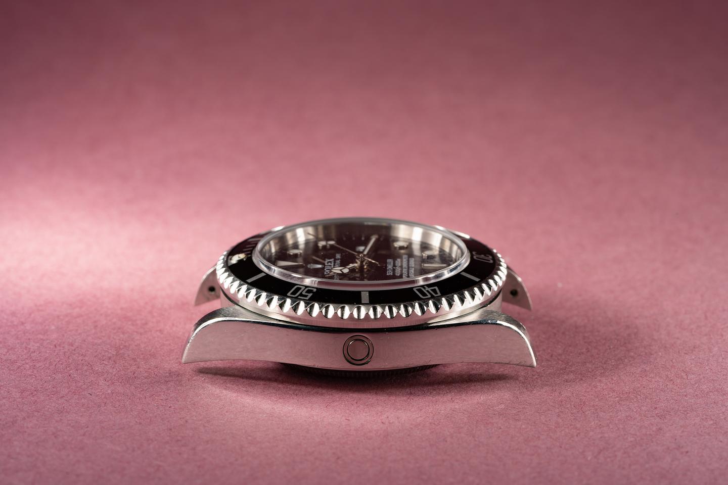Case: Excellent case with the factory bevels still intact that shows some wear from use. The black bezel is also in excellent condition and shows light wear.