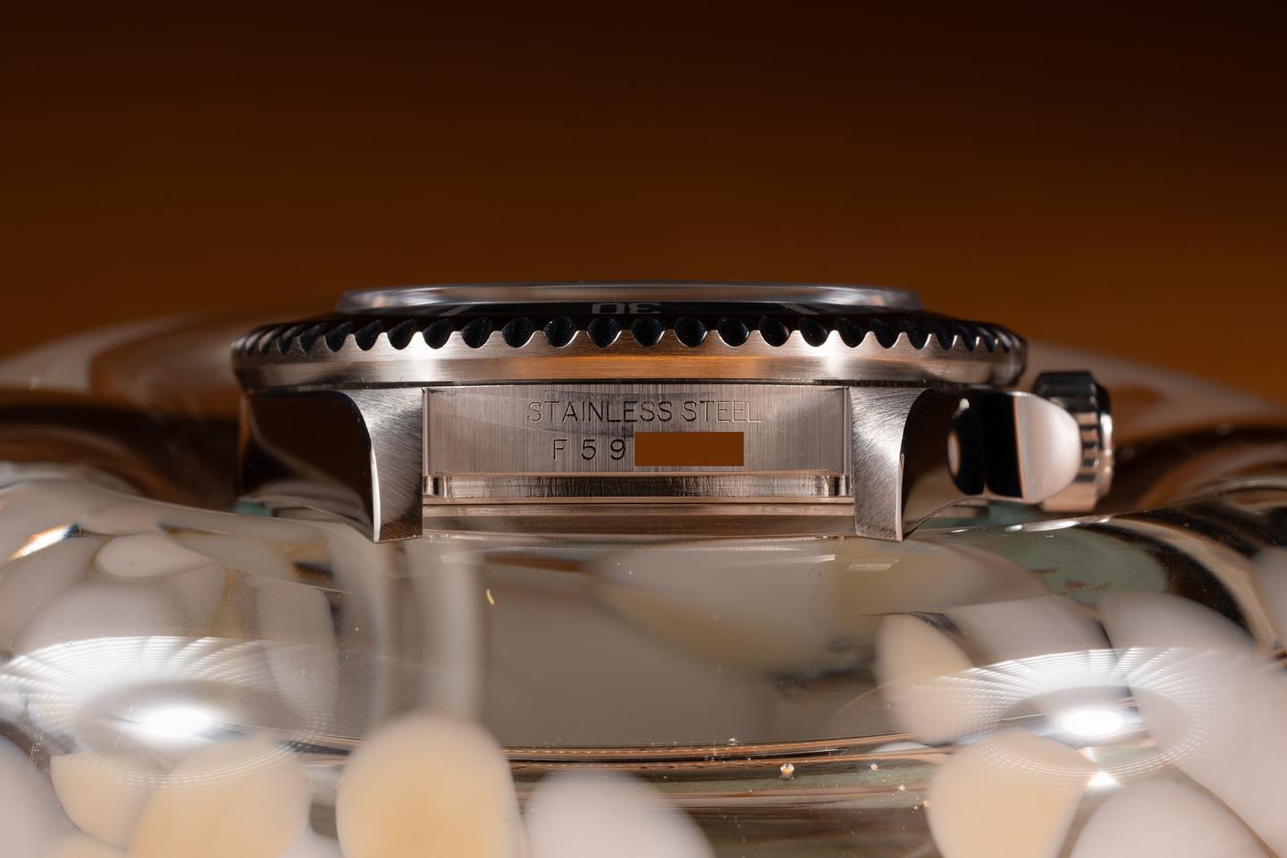 Case: The excellent case has just returned from polishing showing sharp prominent bevels. The black bezel is also in excellent condition showing only light wear from use.