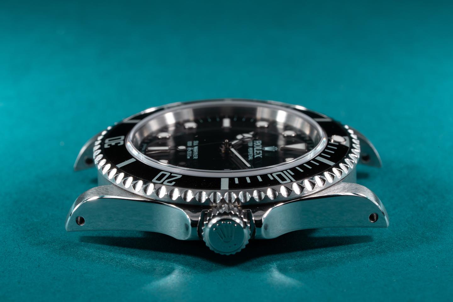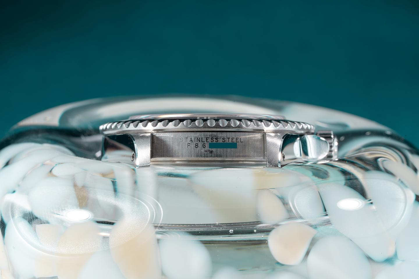 Case: The recently polished case is excellent featuring sharp, wide and prominent bevels. The black bezel insert is also in excellent condition showing only very light wear.