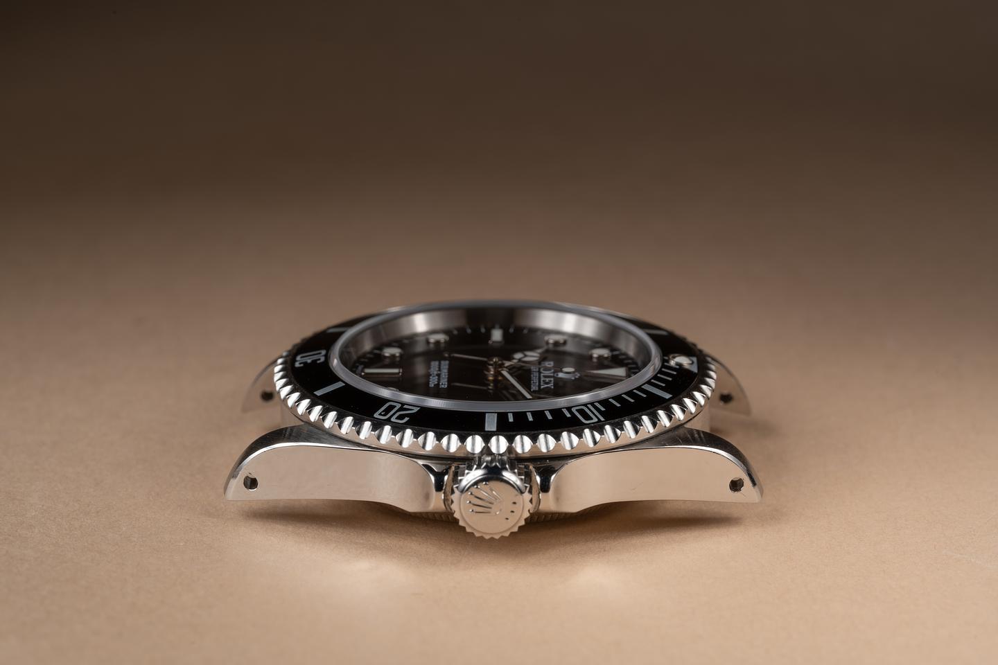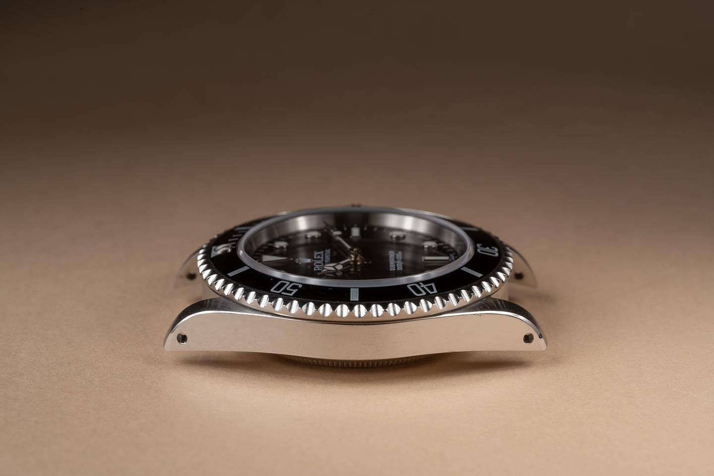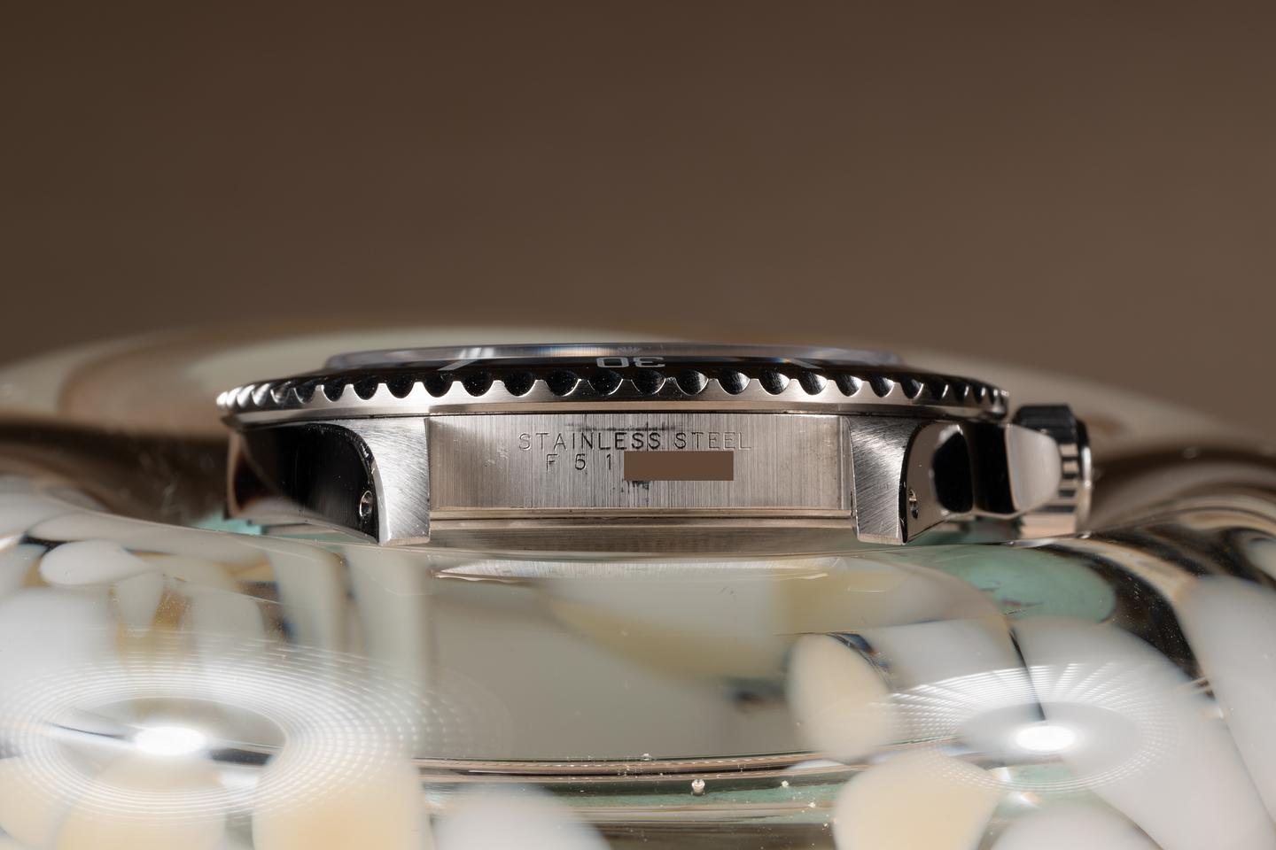 Case: The thick case is excellent showing sharp prominent bevels and only very light wear. The black bezel insert is also in excellent condition showing only very light wear from use.