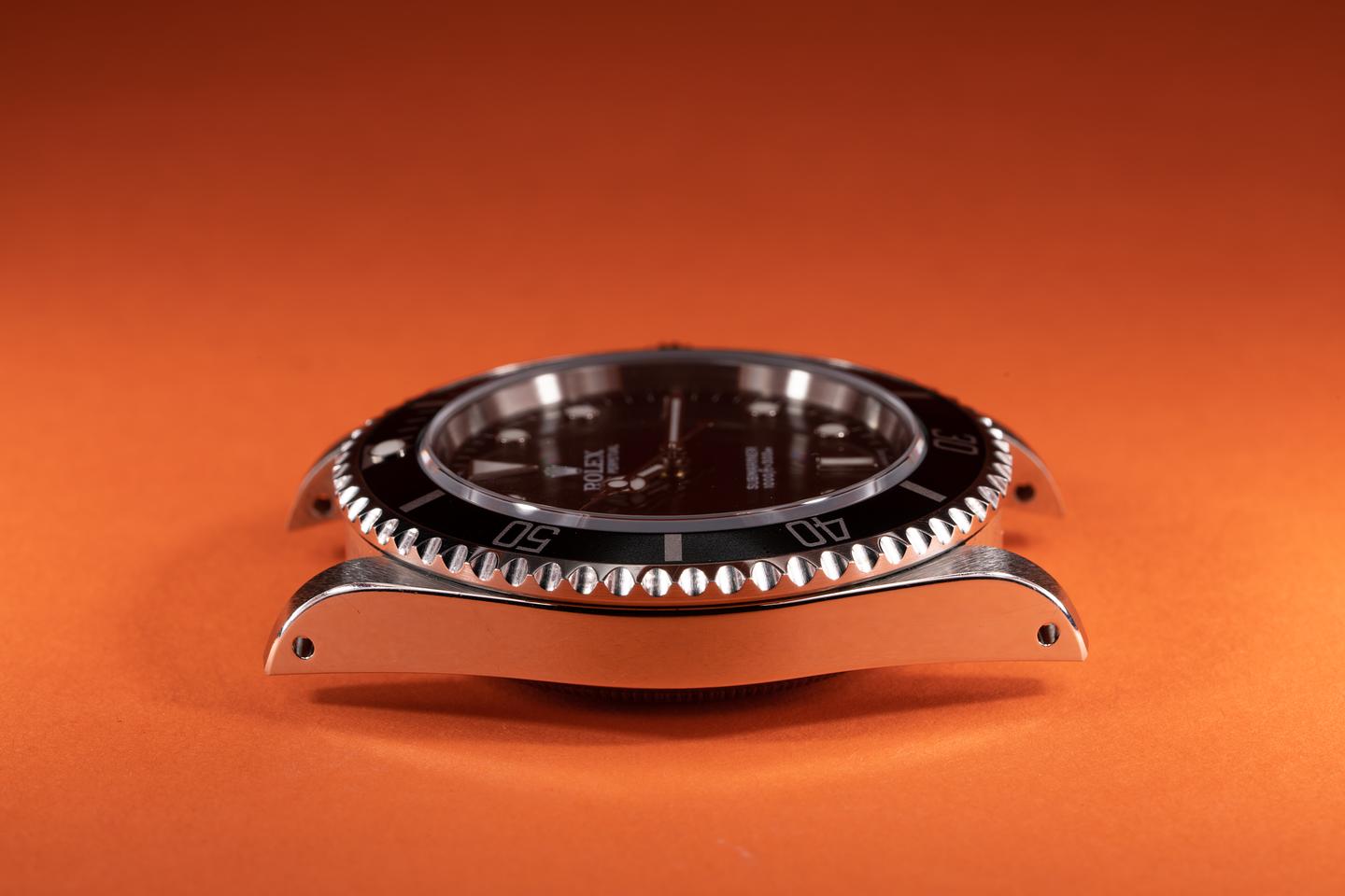 Case: The previously polished case is excellent showing sharp prominent bevels and only light wear from use. The black bezel insert is also in excellent condition showing only light wear from use.
