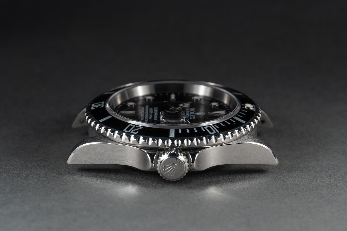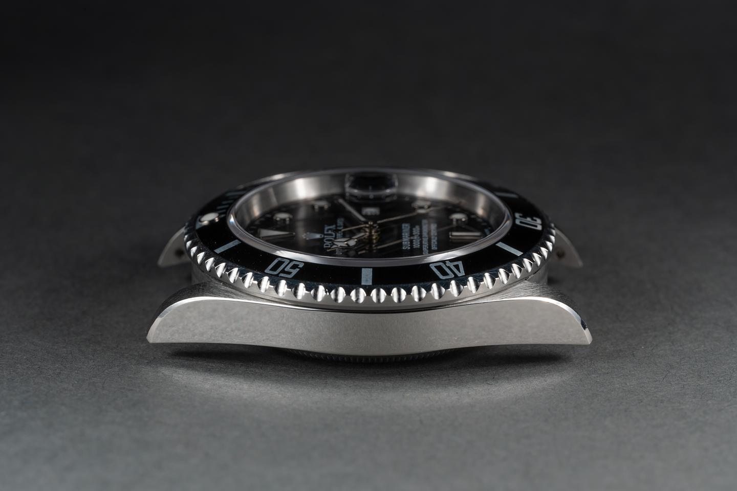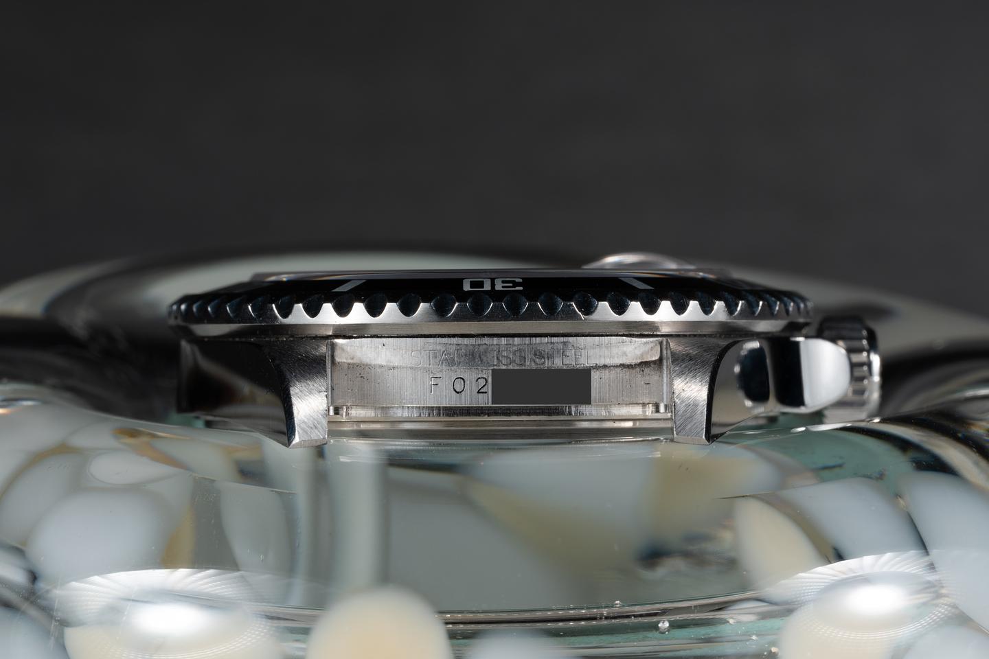 Case: The thick and even no holes case is excellent showing sharp prominent bevels and only light wear from use. The black bezel insert is also in excellent condition showing only very lighter from use.