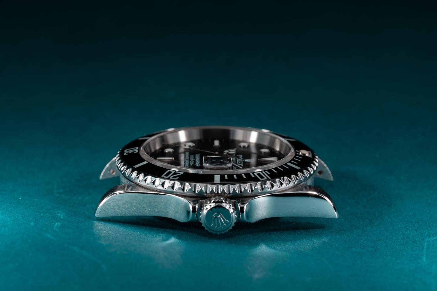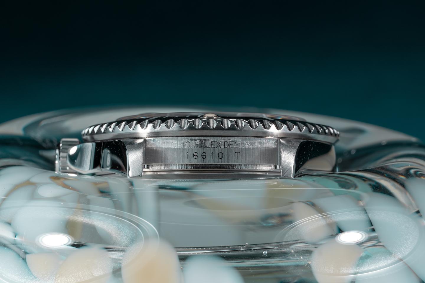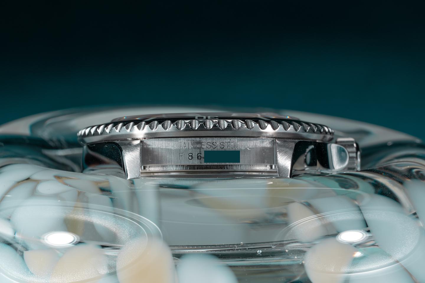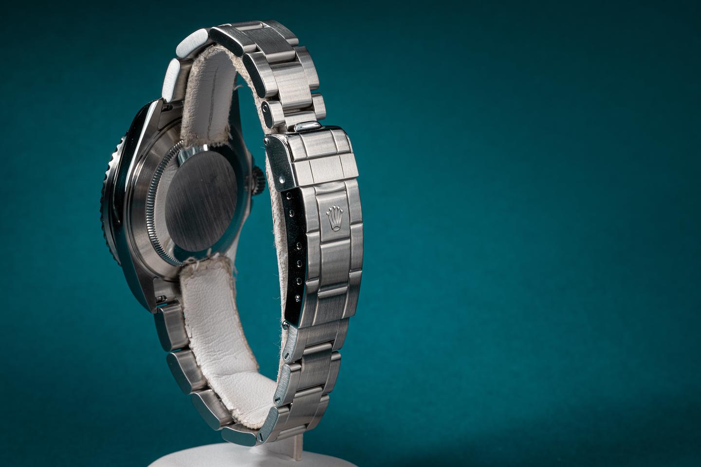 Case: The no holes case has been polished in the past showing only very light wear from use. The black bezel insert is also in excellent condition showing only very light wear from use.