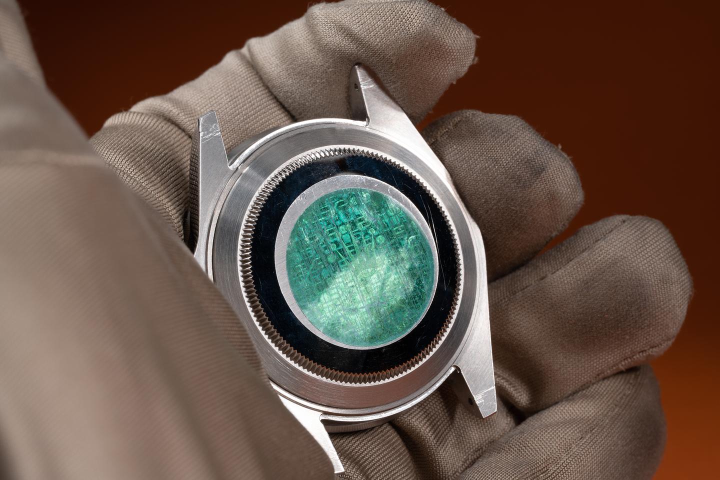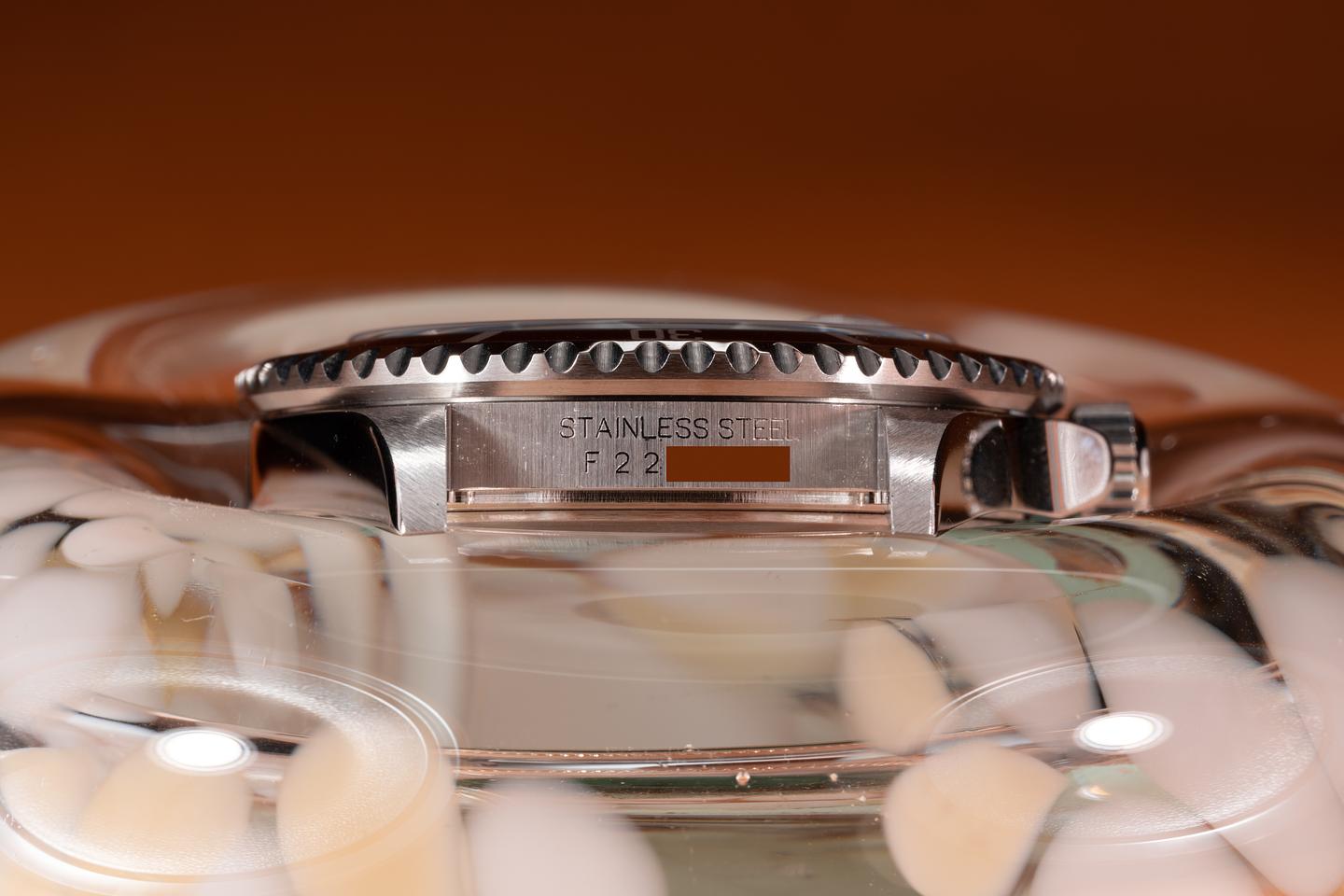 Case: The thick and even case is excellent showing prominent bevels and only very light wear from use. The black bezel insert is also in excellent condition showing no visible wear.