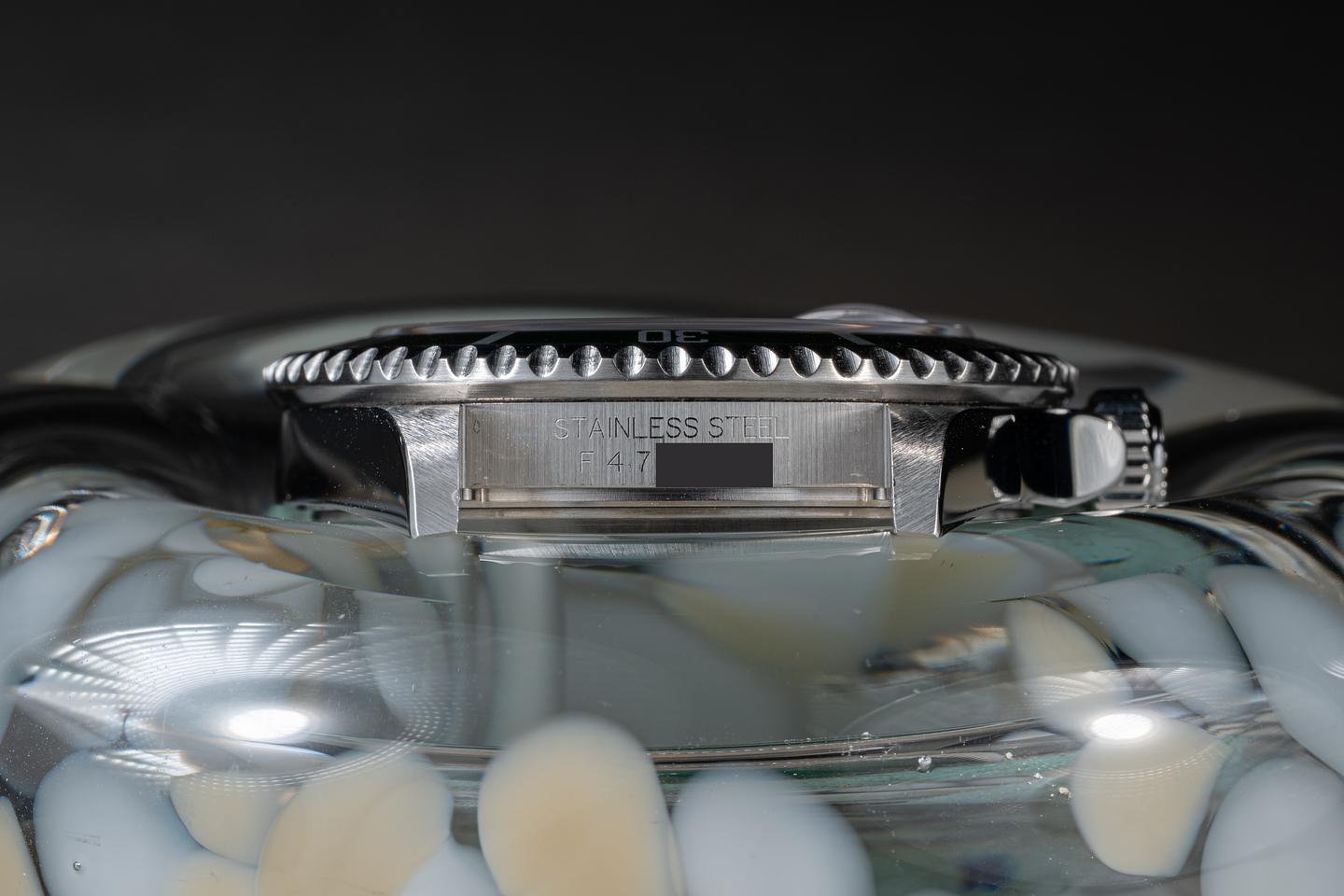 Case: The thick and even case appears to be unpolished showing prominent factory beveling and only very light wear. The bezel insert is also in excellent condition showing little if any wear from use.