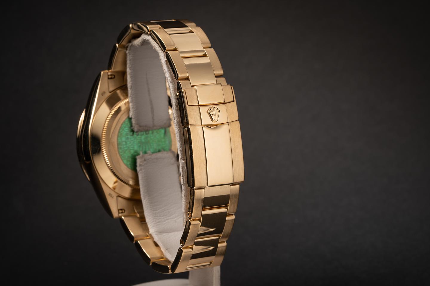 Case: The previously polished 18k yellow gold case is excellent showing only light wear from use. The 18k yellow gold bezel is also excellent showing only light wear from use.