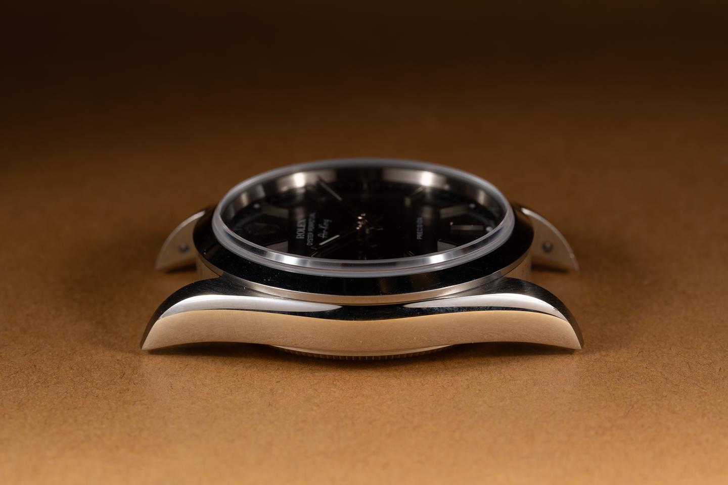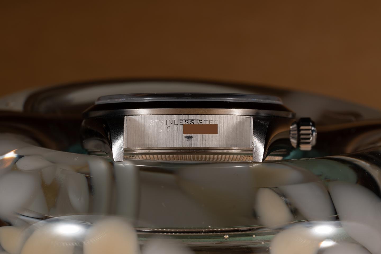 Case: The 34mm case is excellent showing only light wear from use. The smooth stainless bezel is also in excellent condition showing only light wear from use.