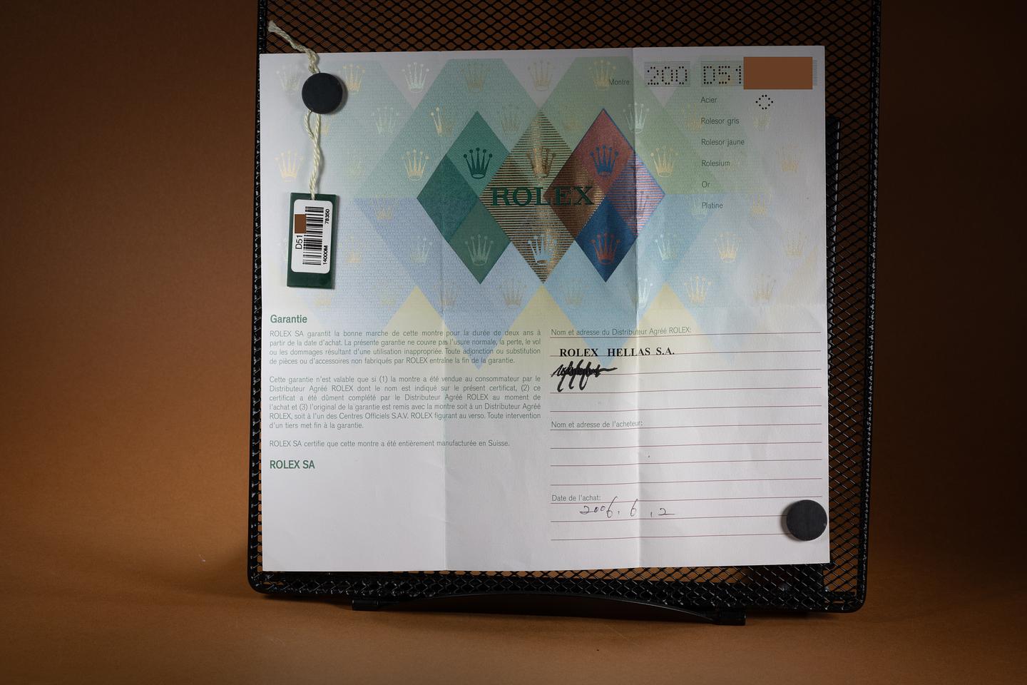 Bracelet: The 12 link Oyster bracelet is excellent showing only very light stretch for its age. The clasp is stamped with a matching 2005 date code.