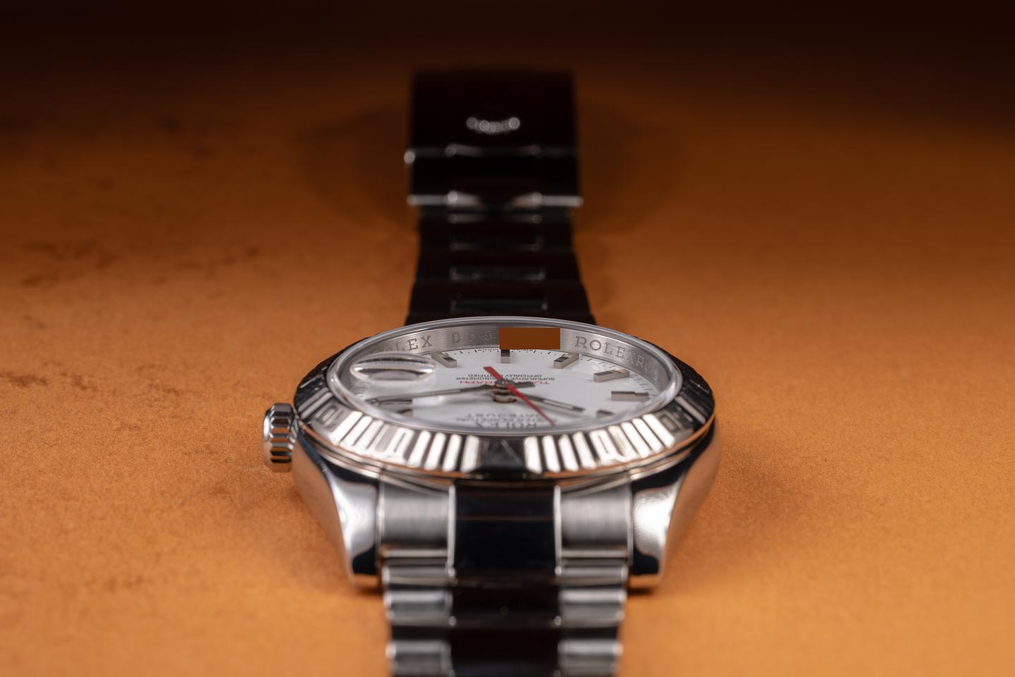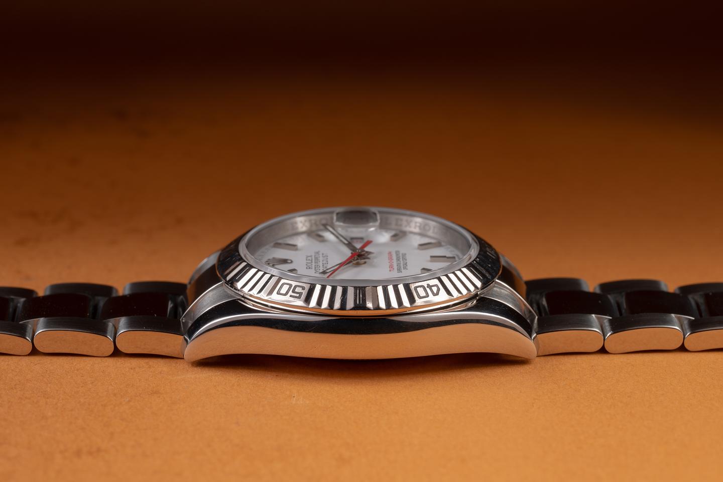 Case: The 36mm case is excellent, showing only light wear from use. The 18K white gold Turn-o-graph" bezel is also in excellent condition, showing light wear from use.