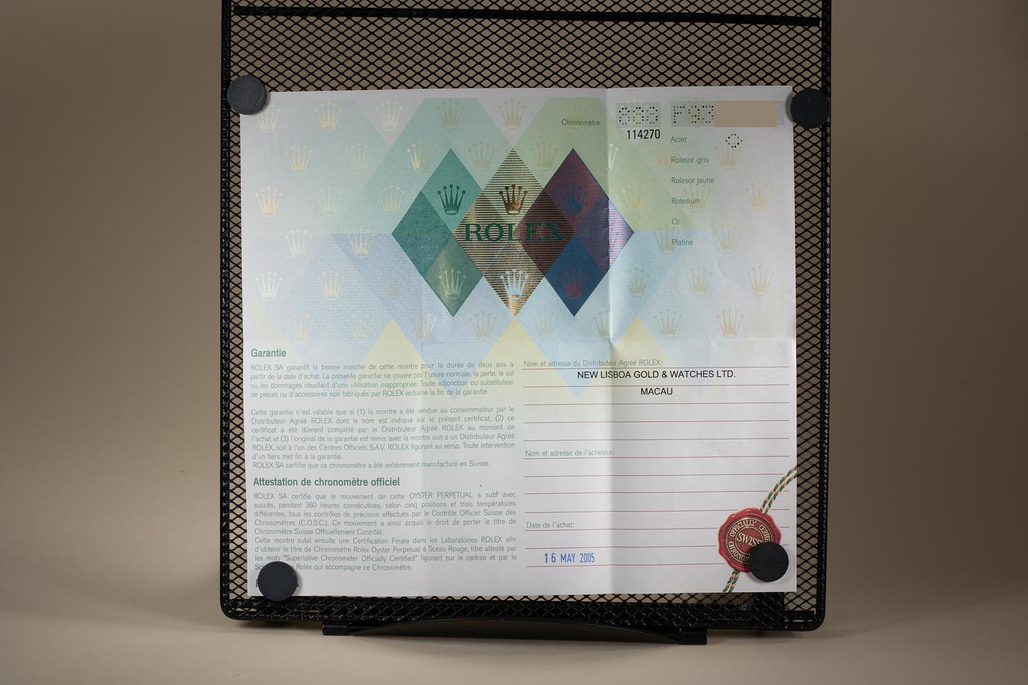 Bracelet: The 12 link Oyster bracelet is excellent showing only very light stretch for its age. The clasp is stamped with a matching 2005 date code.