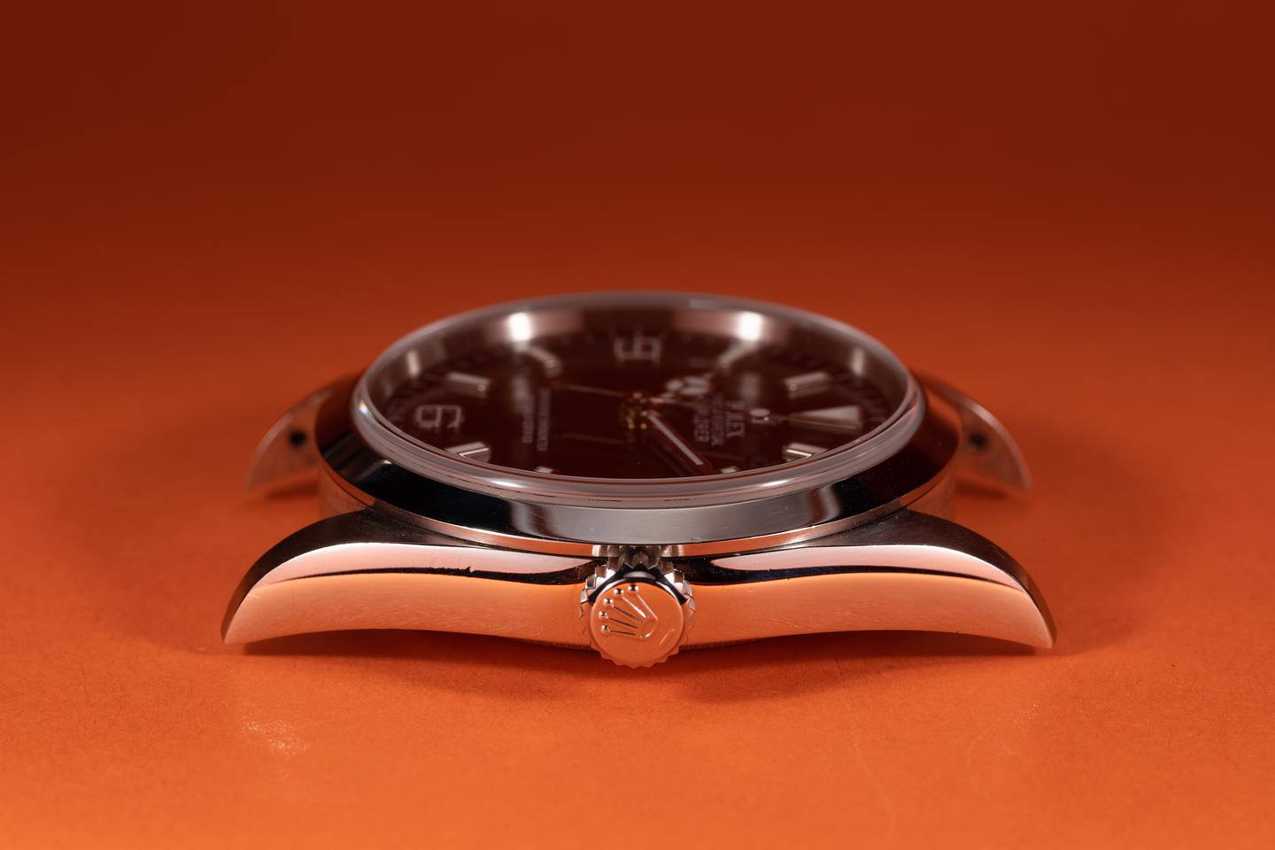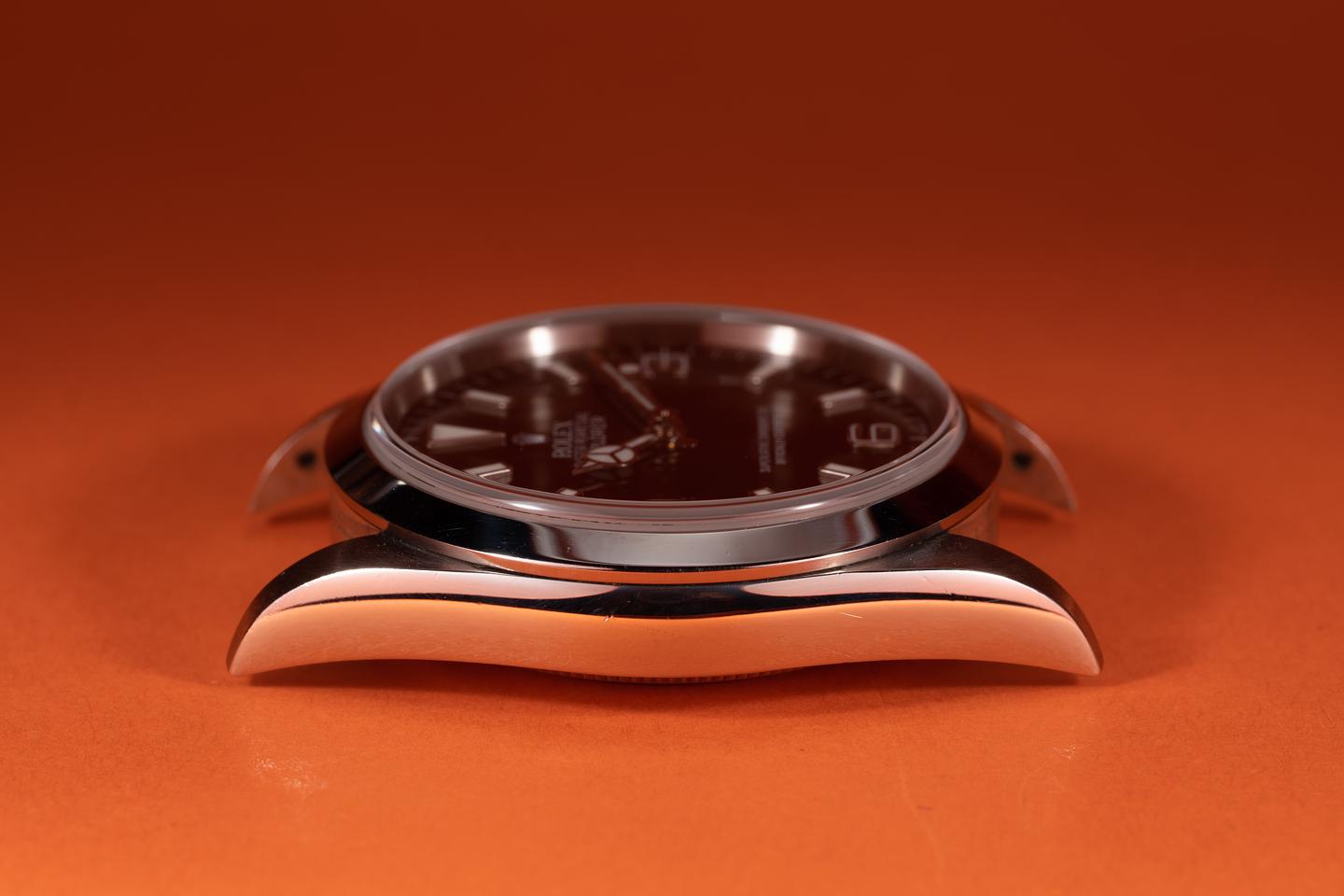 Case: The thick and even 36mm case is excellent showing only very light wear from use. The smooth stainless bezel is also in excellent condition showing only very light wear.