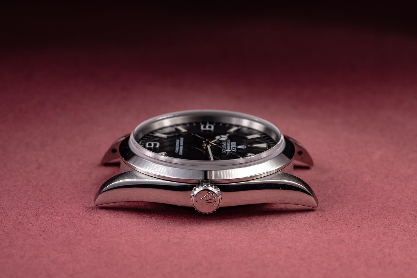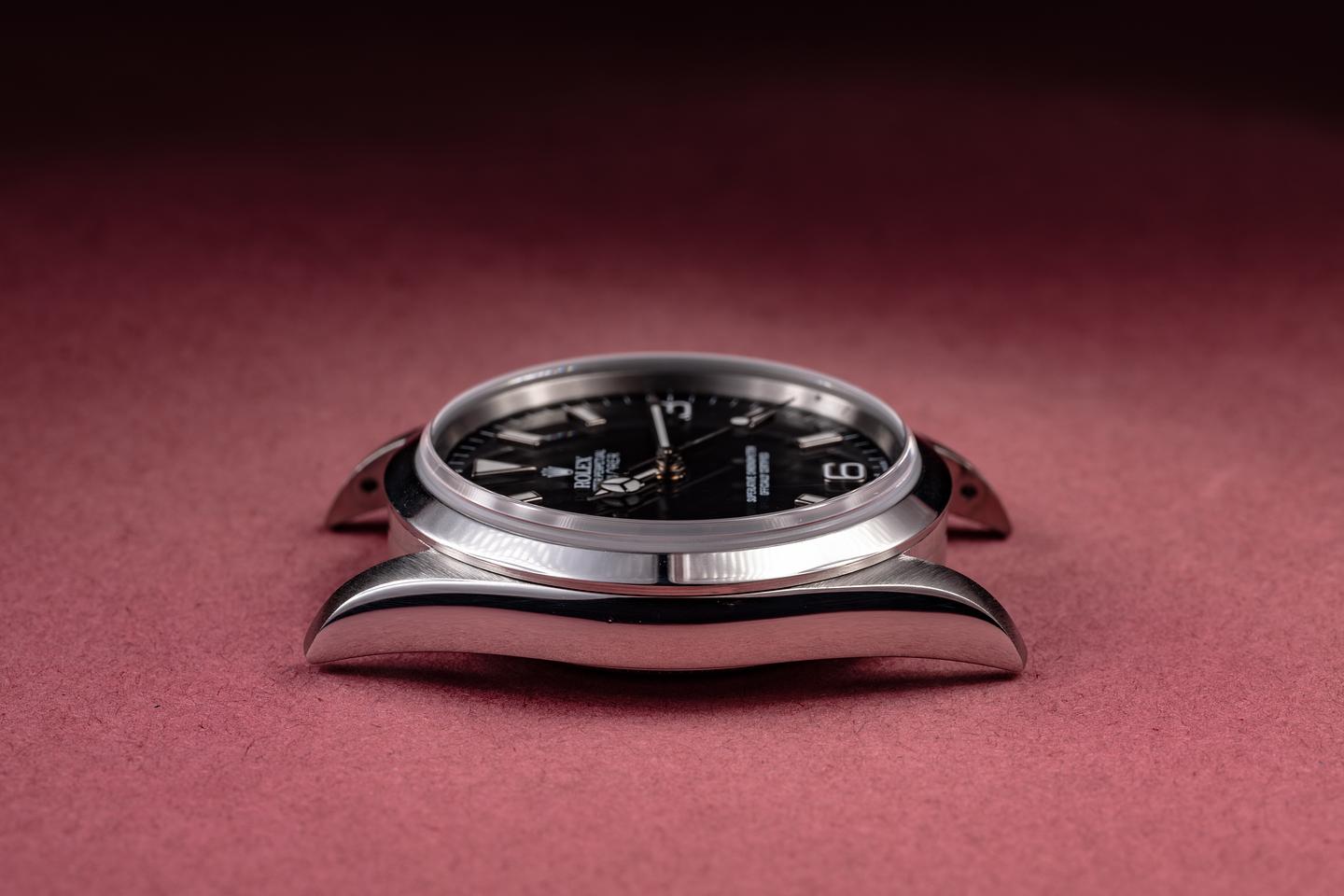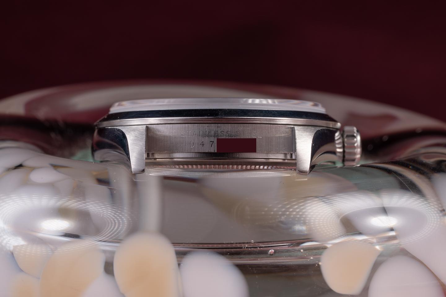 Case: The sharp 36mm case is excellent, showing only light wear from use. The smooth stainless bezel is also in excellent condition, showing only light wear from use.
