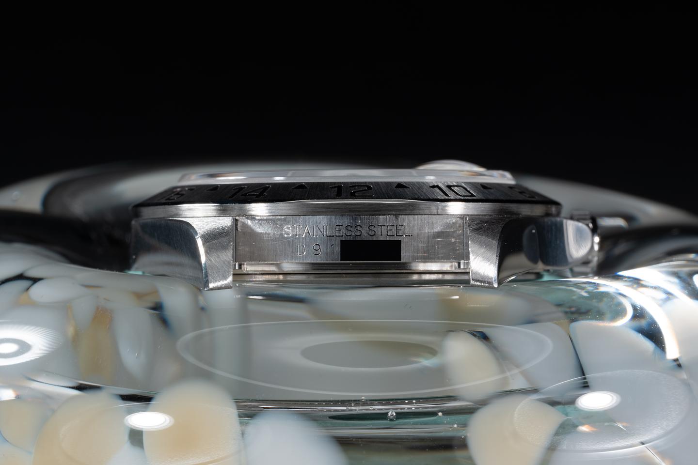 Case: The thick, even case is excellent showing sharp prominent bevels and only very light wear from use. The stainless bezel is also in excellent condition showing a sharp and well defined sunburst finish.
