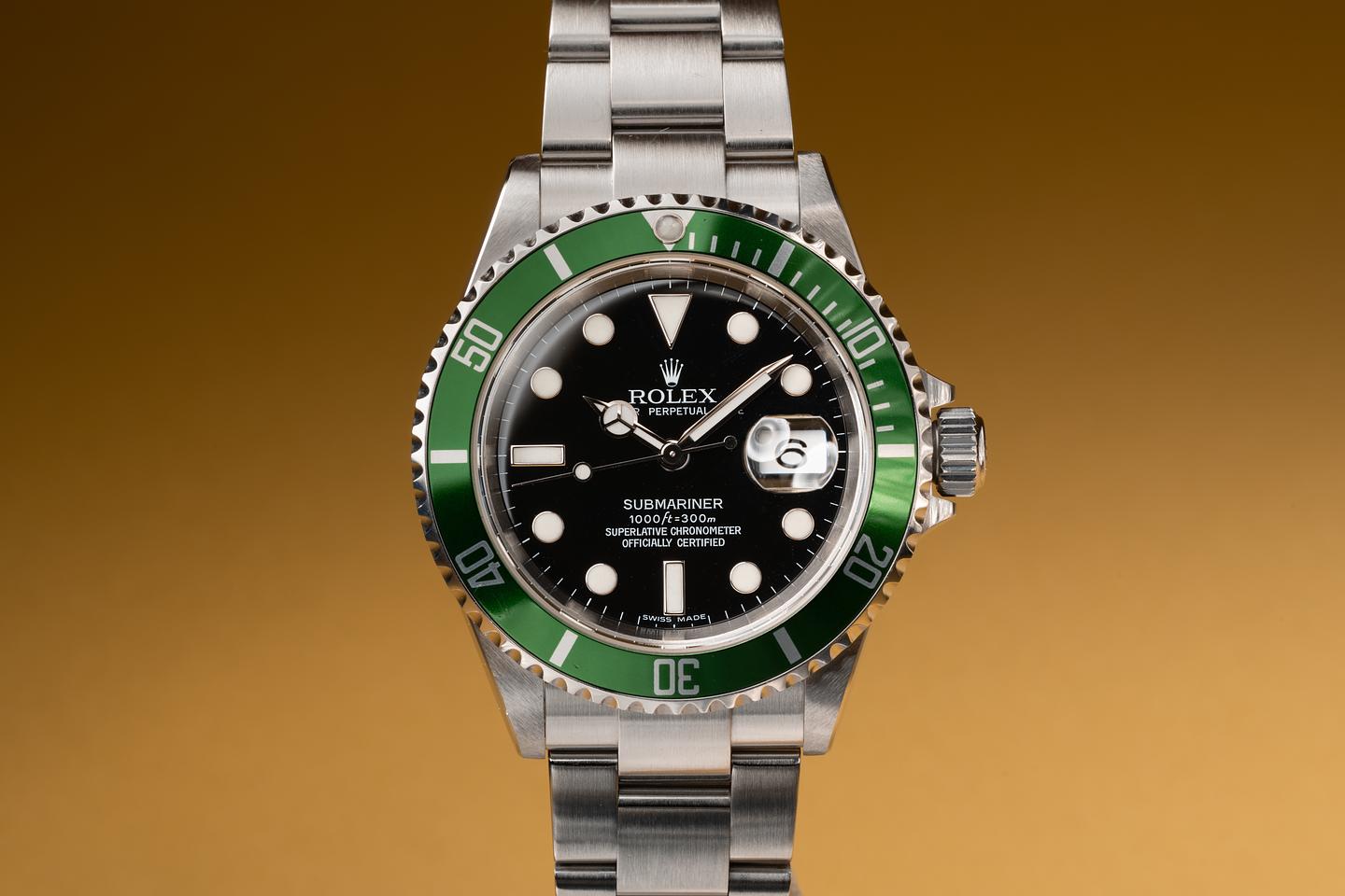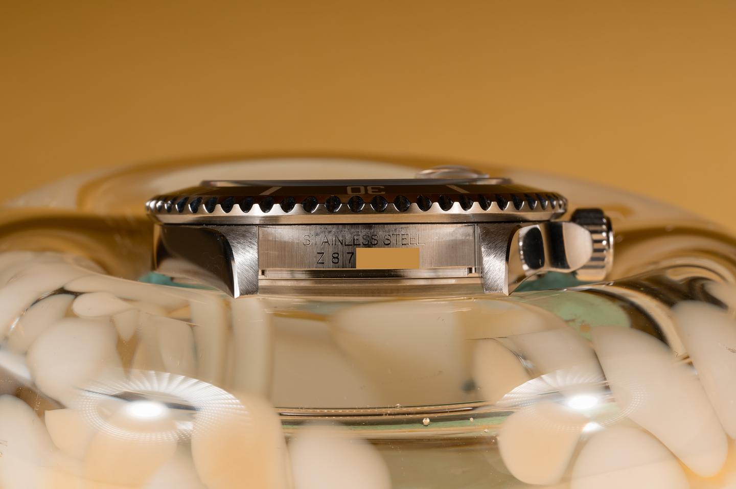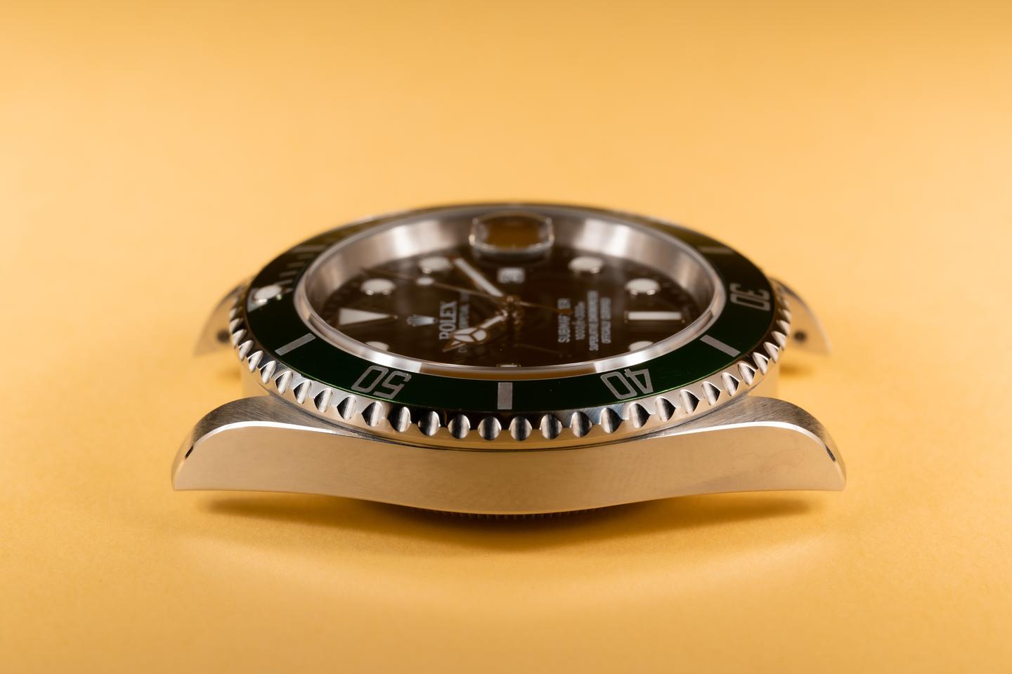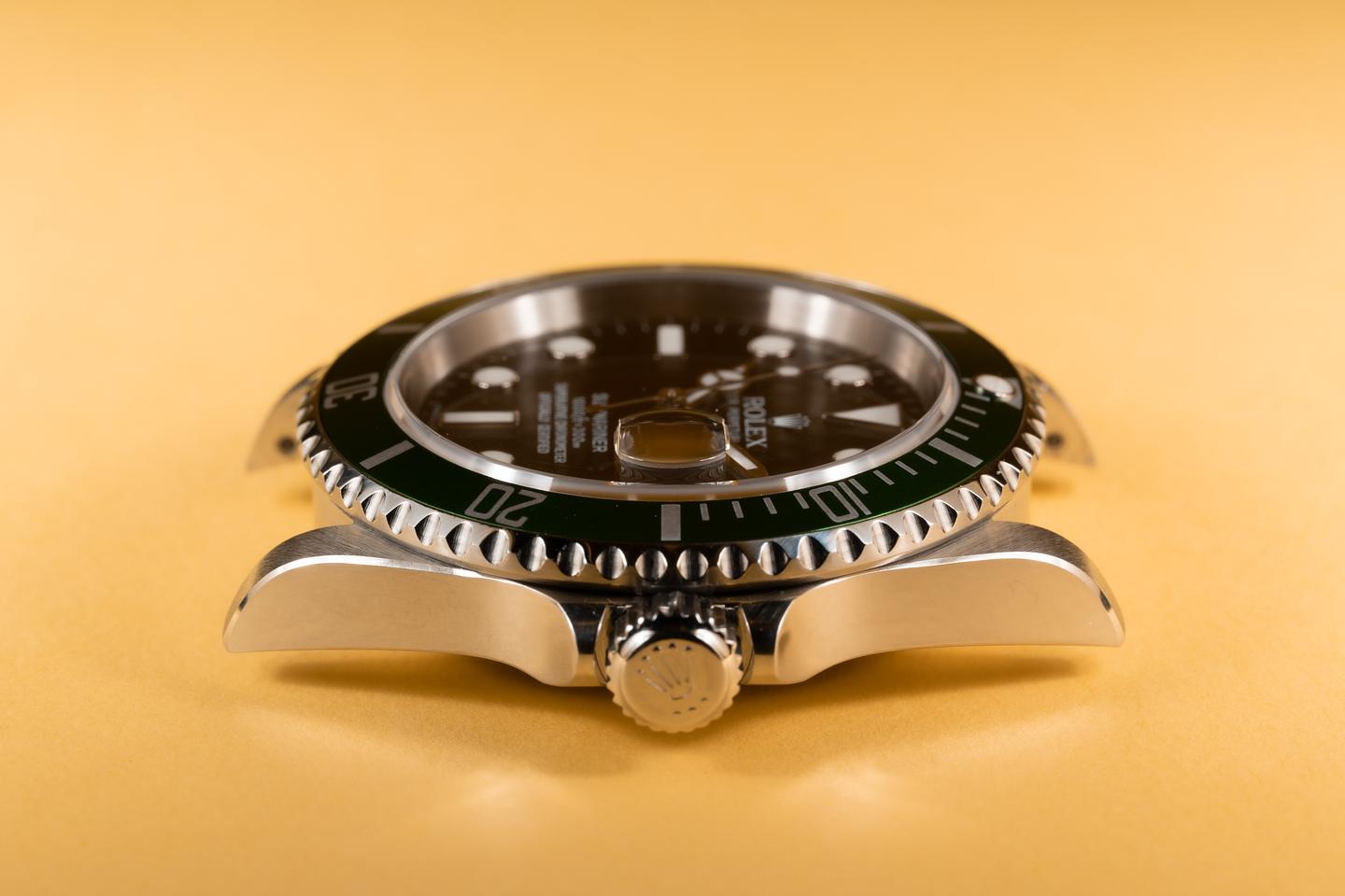 Case: The excellent case has just returned from polishing showing sharp prominent bevels and symmetrical lugs. The green bezel insert is also in excellent condition showing only very light wear from use.