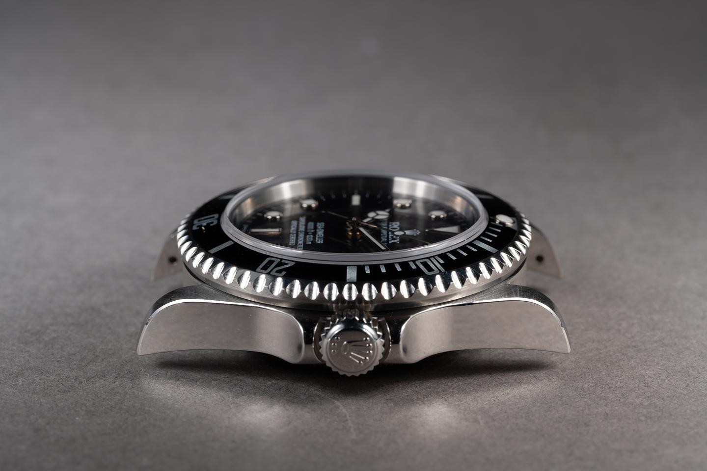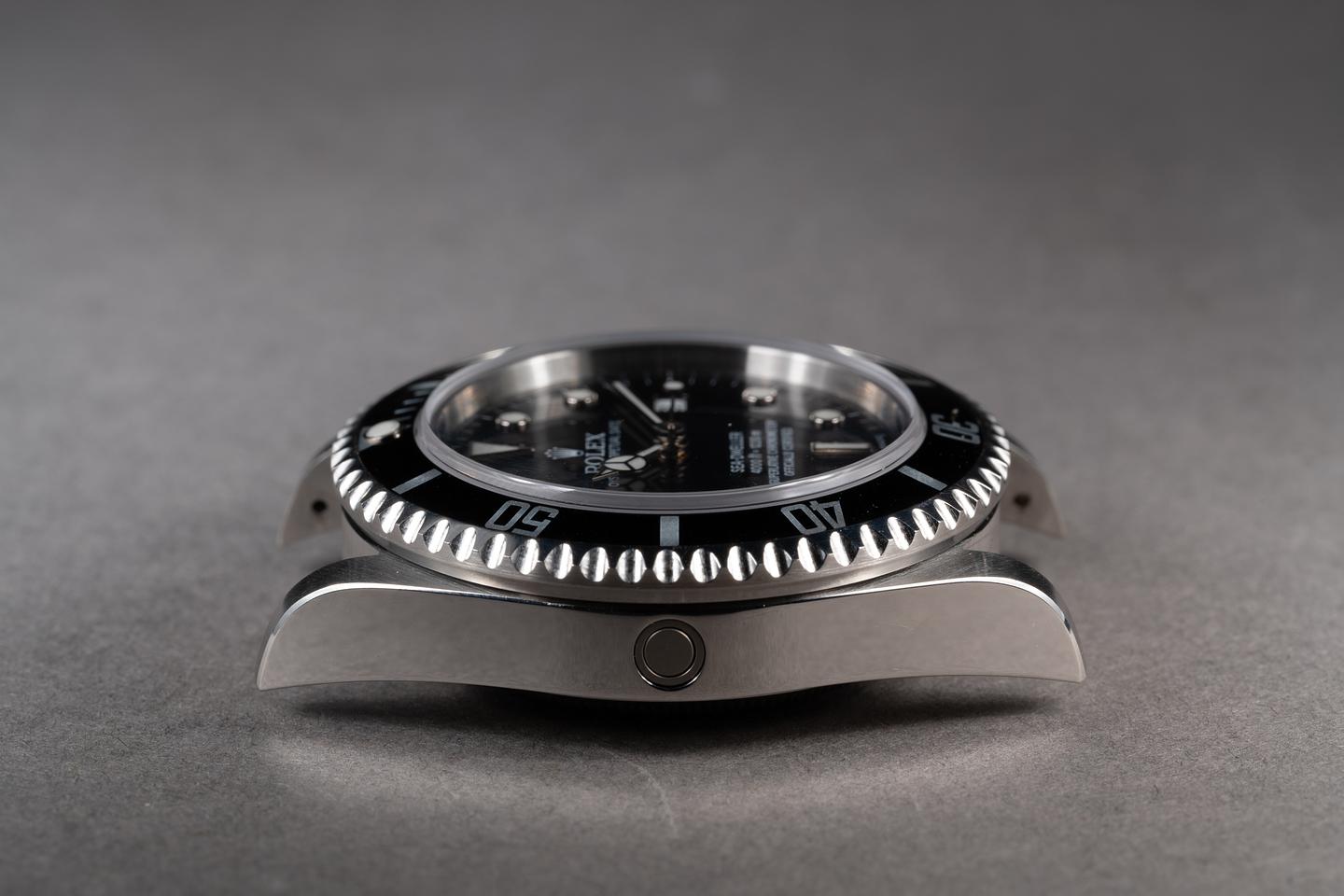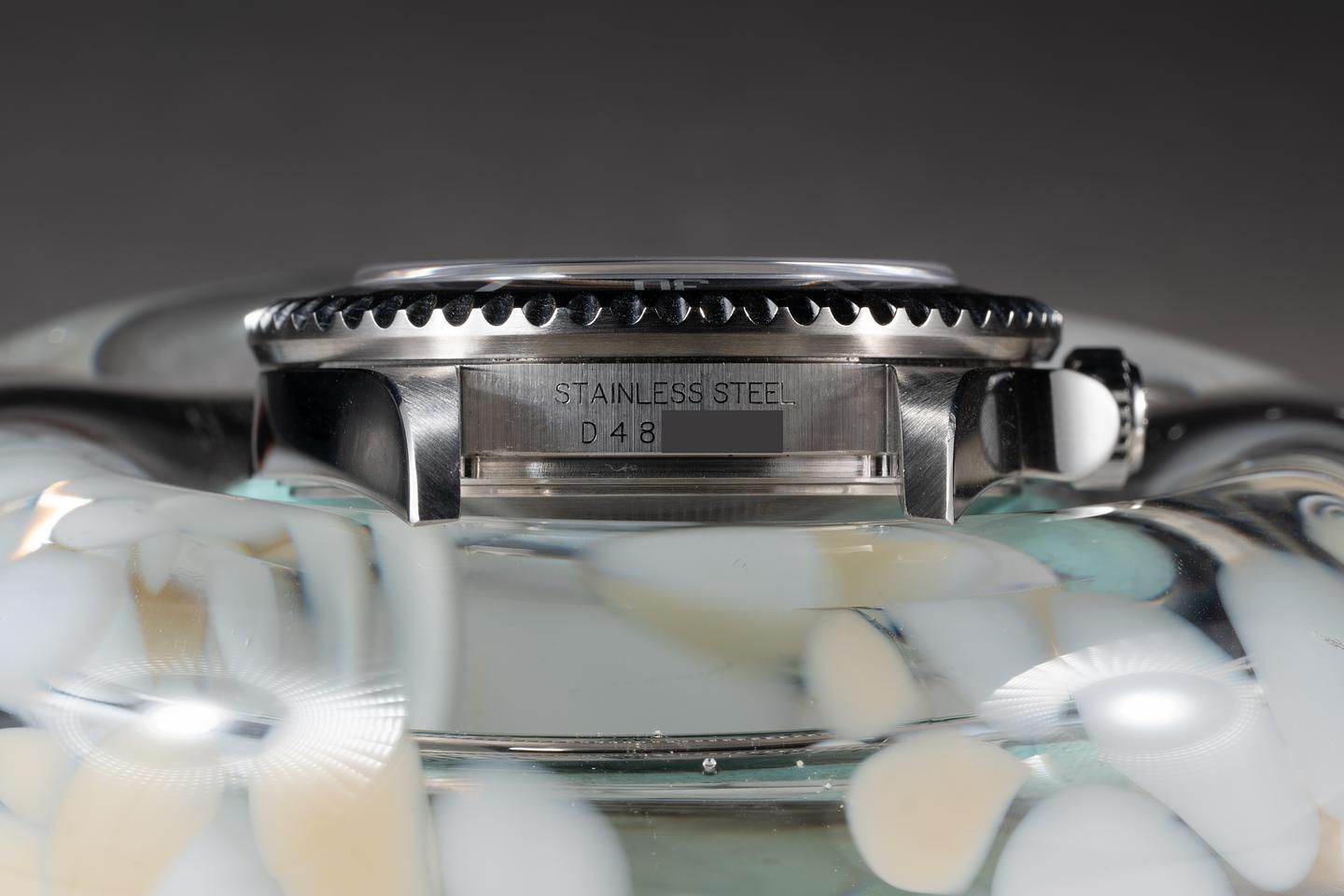 Case: The previously polished case is excellent showing sharp prominent bevels and only very light wear from use. The black bezel insert is also in excellent condition showing only very light wear from use.