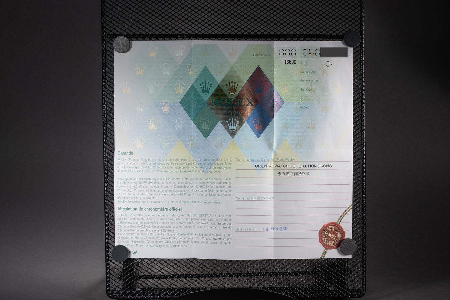 Bracelet: The 11 link Oyster bracelet is excellent showing only very light stretch for its age. The clasp is stamped with a matching 2005 date code.