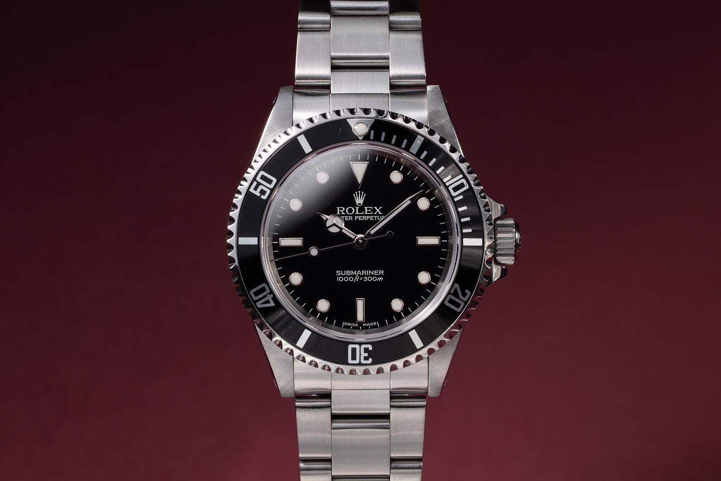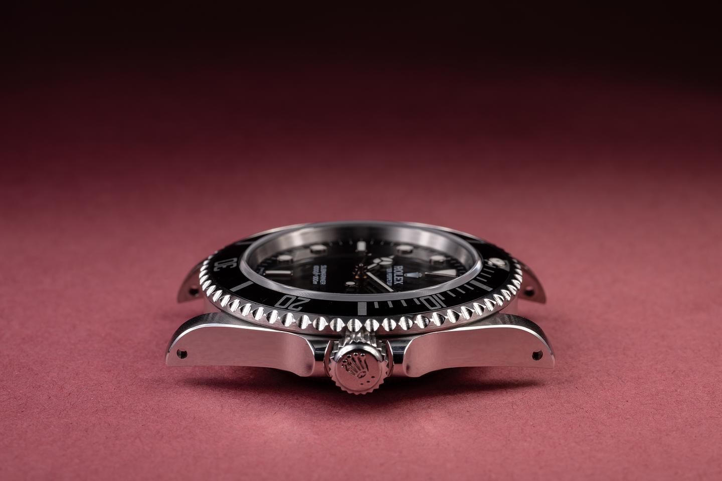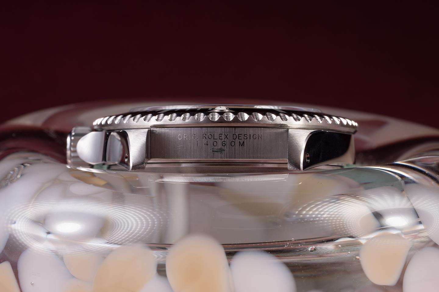 The recently polished case is excellent, showing sharp, prominent bevels. The black bezel insert is also in excellent condition, showing only very light wear from use.