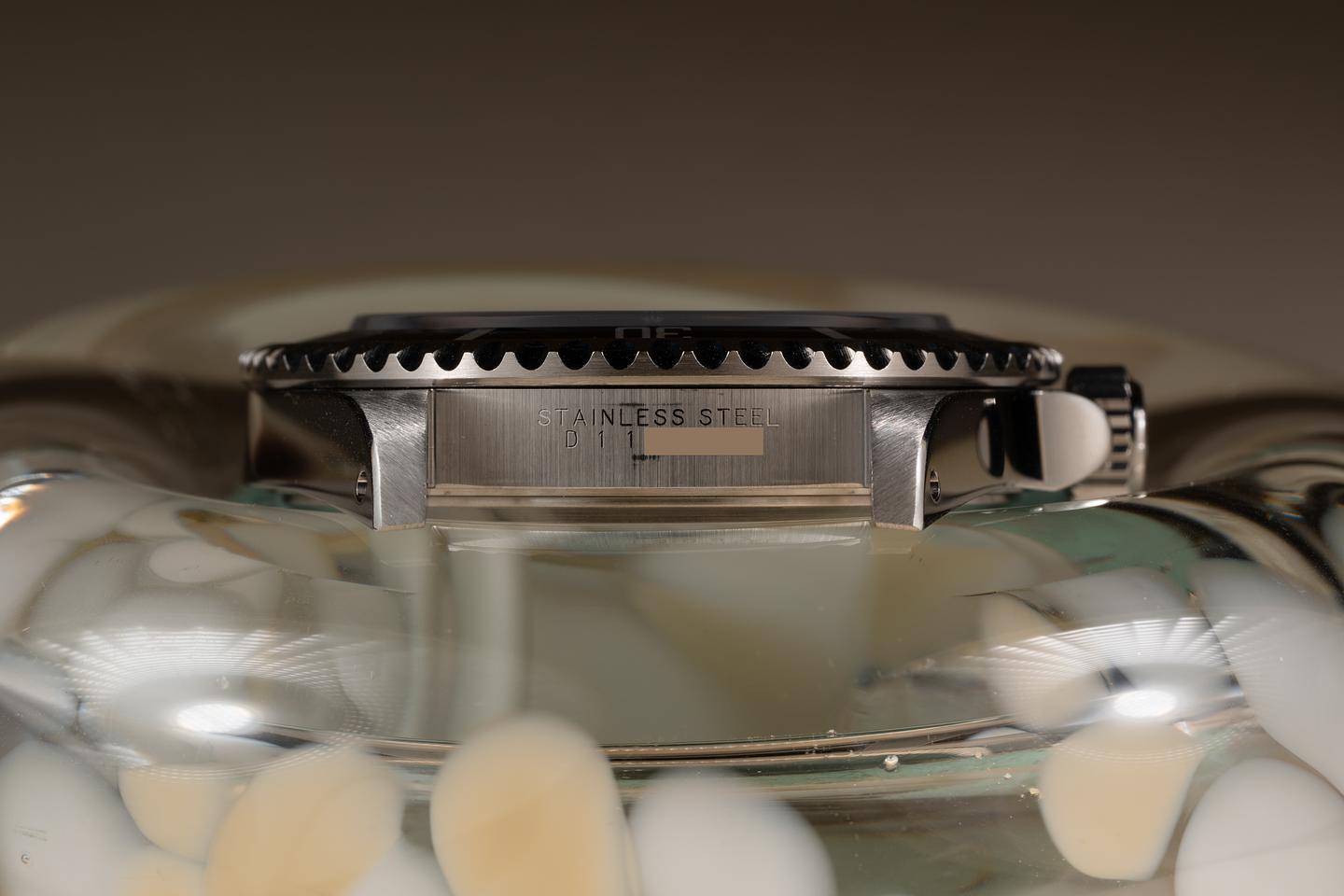 Case: The case is excellent showing only very light wear from use. The black bezel insert is also in excellent condition showing only very light wear.