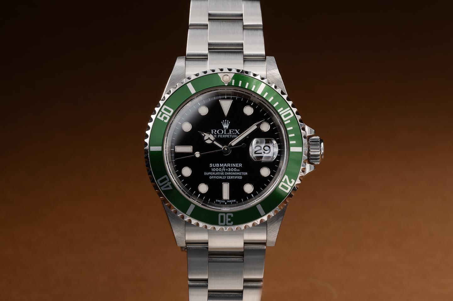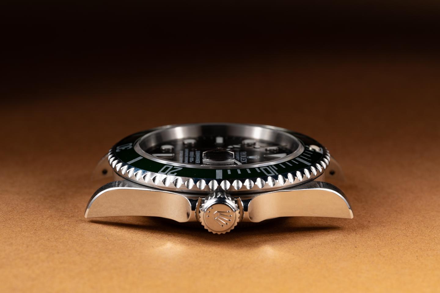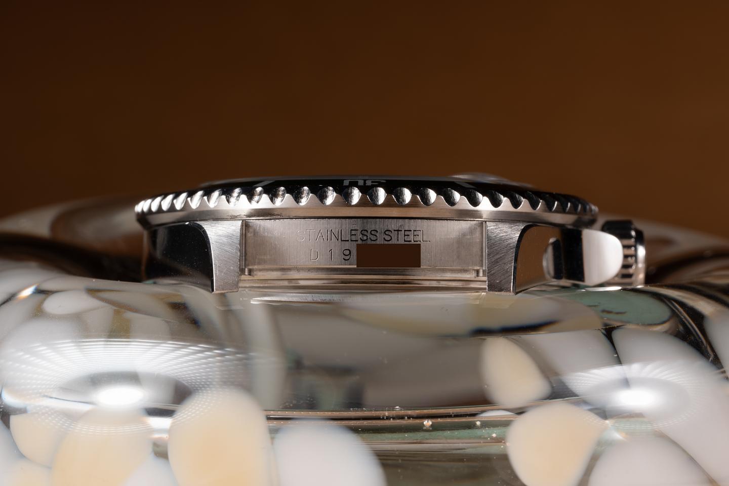 Case: The thick, sharp case is excellent showing only extremly light wear from use. The green bezel insert is also in excellent condition showing only very light wear from use.