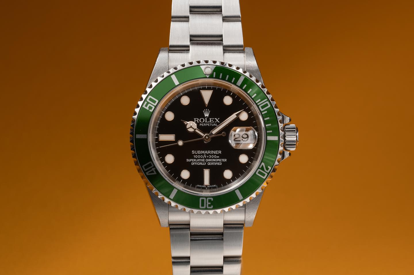 Bracelet: The 11.5 link oyster bracelet is excellent showing only very light stretch for its age. The clasp is stamped with a matching 2005 date code.