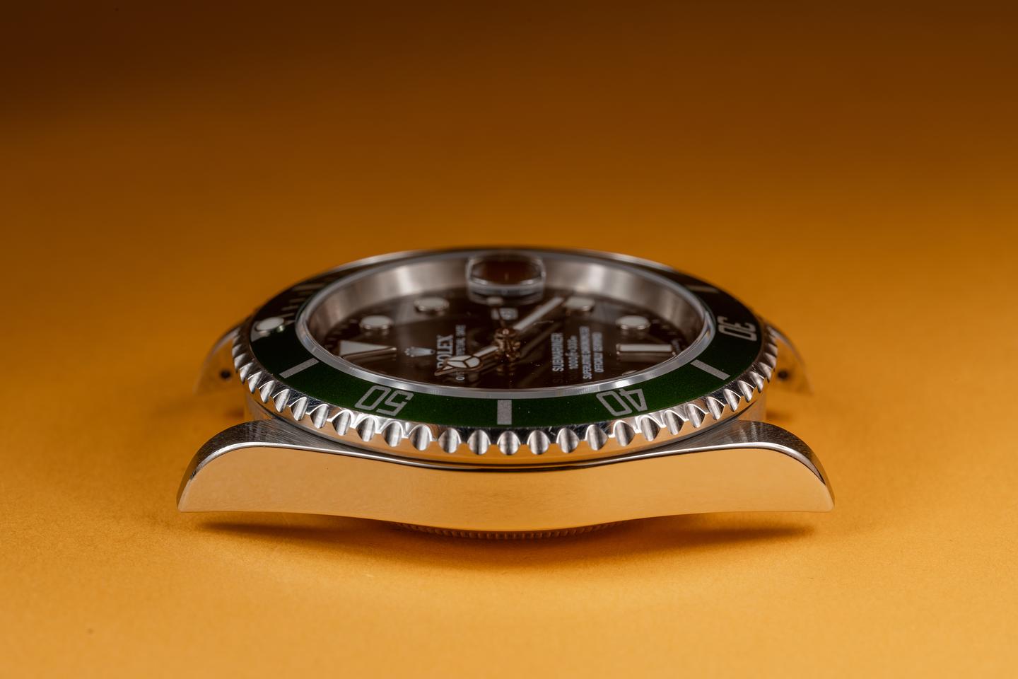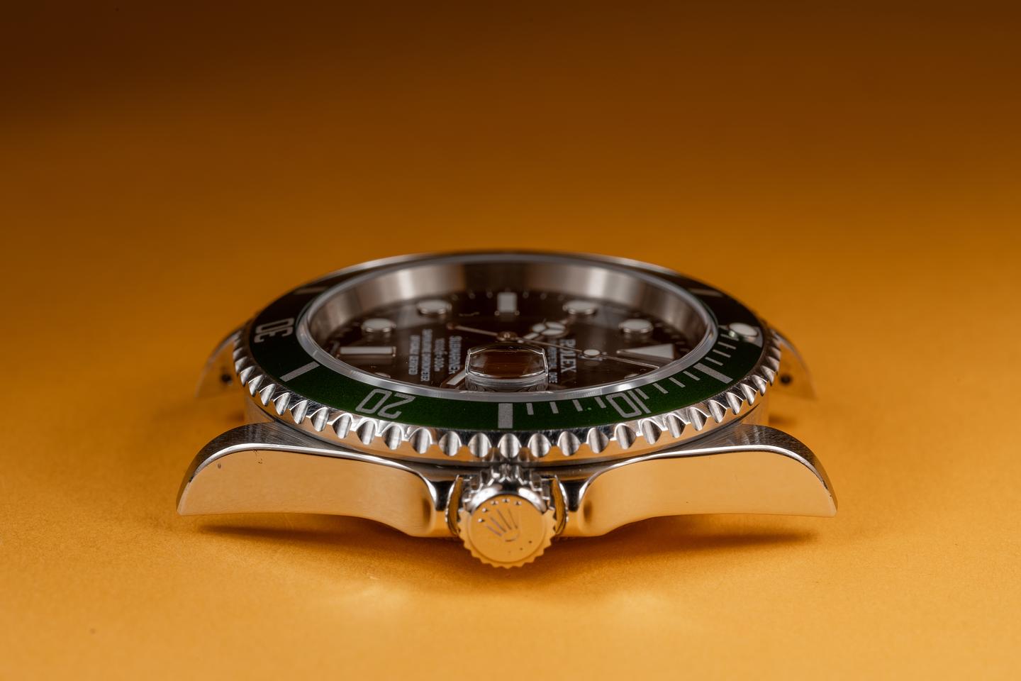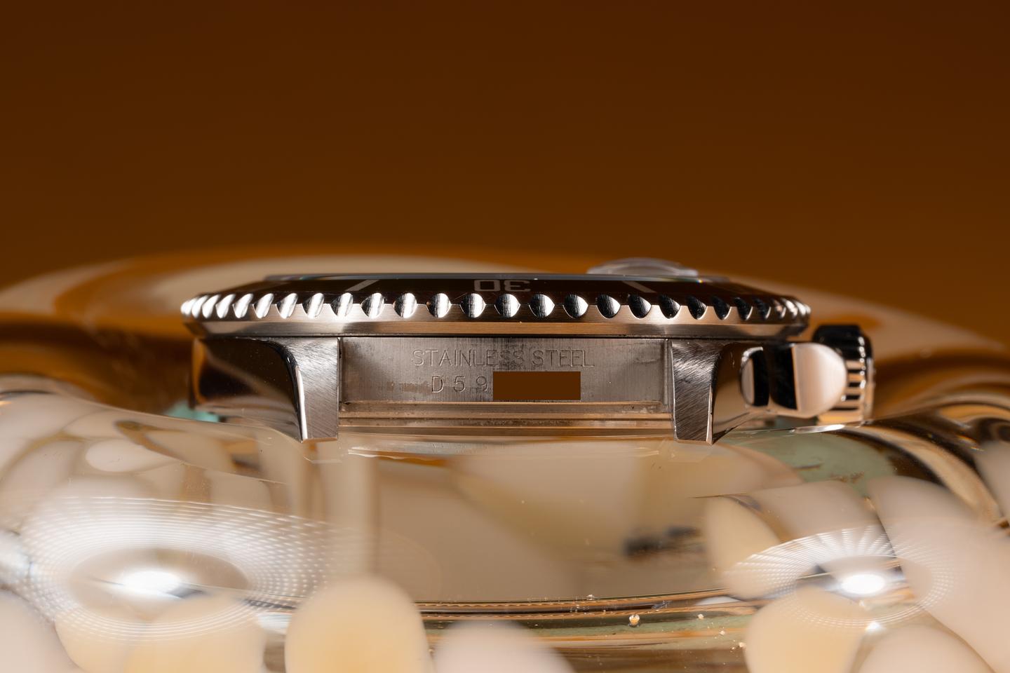 Case: The sharp case is excellent showing only very light wear from use. The green bezel is also in excellent condition showing only very light wear from use.