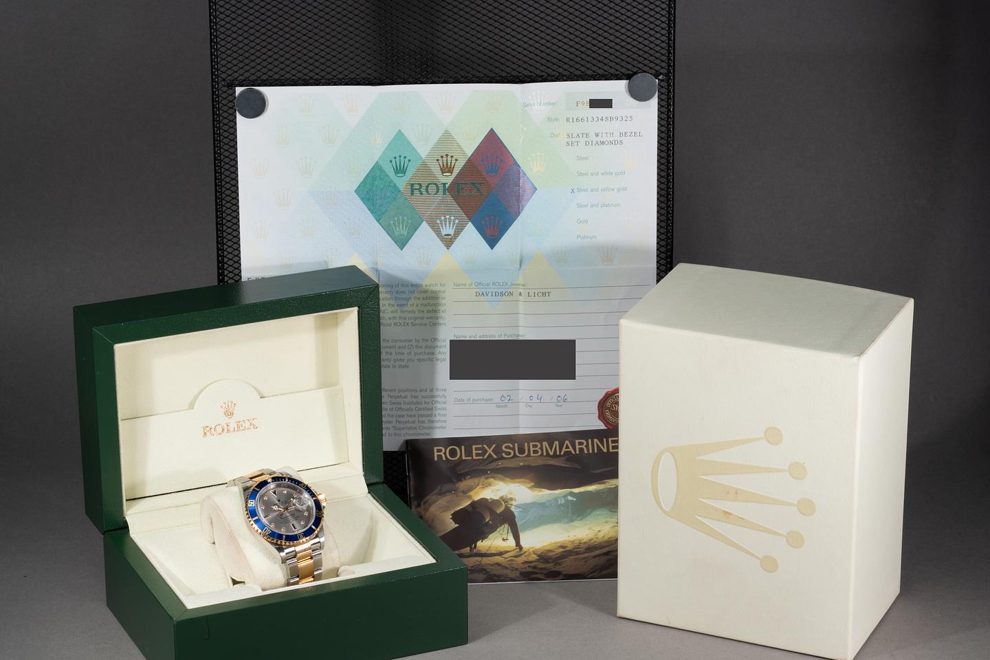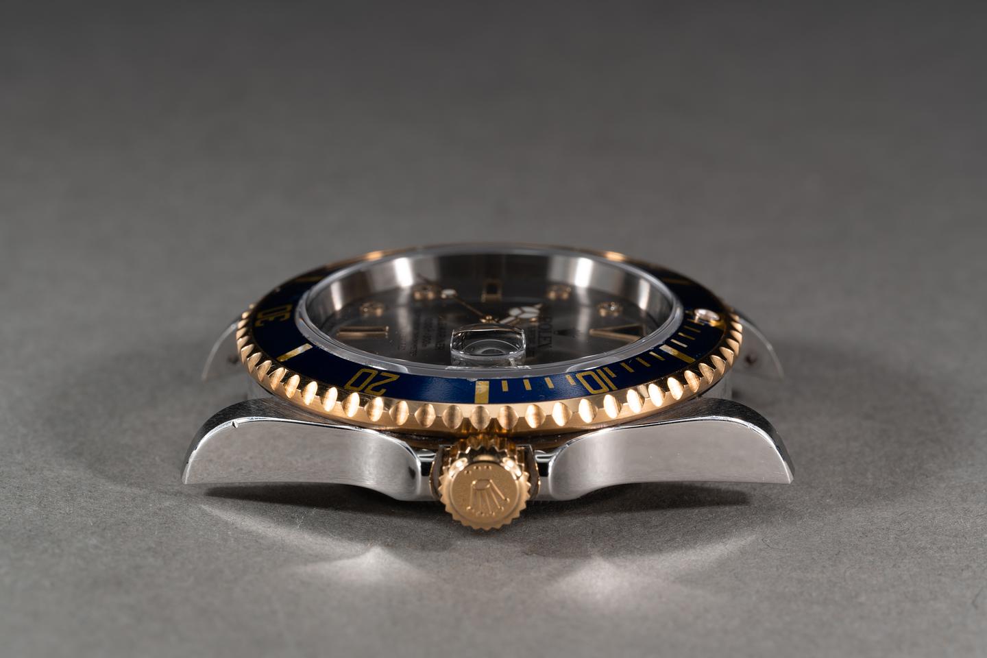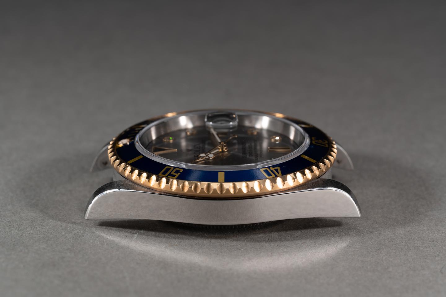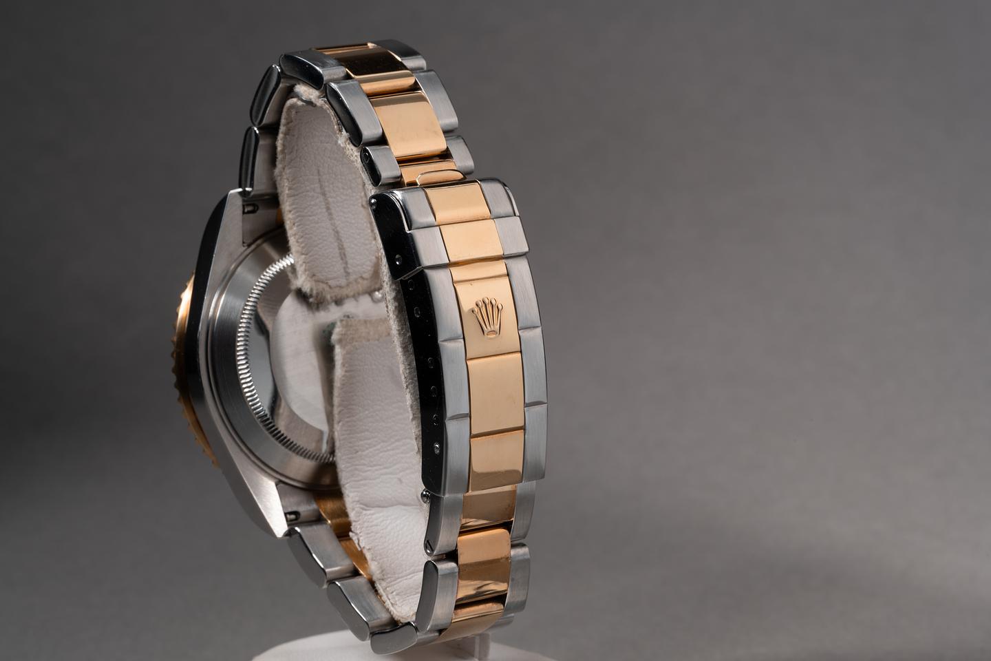 Bracelet: The 9.6 link bracelet has had a permanent link broken out of the 6 o'clock side so it will balance better on smaller wrists. The bracelet is in otherwise excellent condition showing only light stretch for its age. The clasp is stamped with a matching 2005 date code.