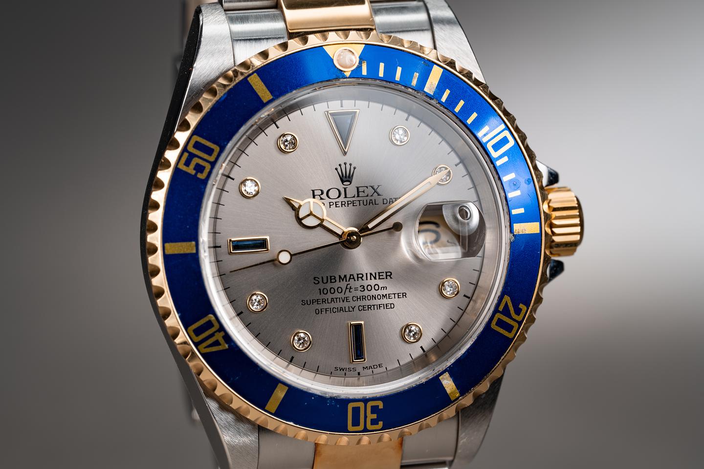 Dial: The slate grey Serti dial is excellent showing no visible wear. THe original factory hands are matching.
