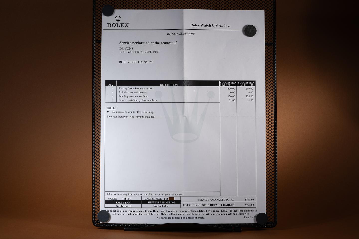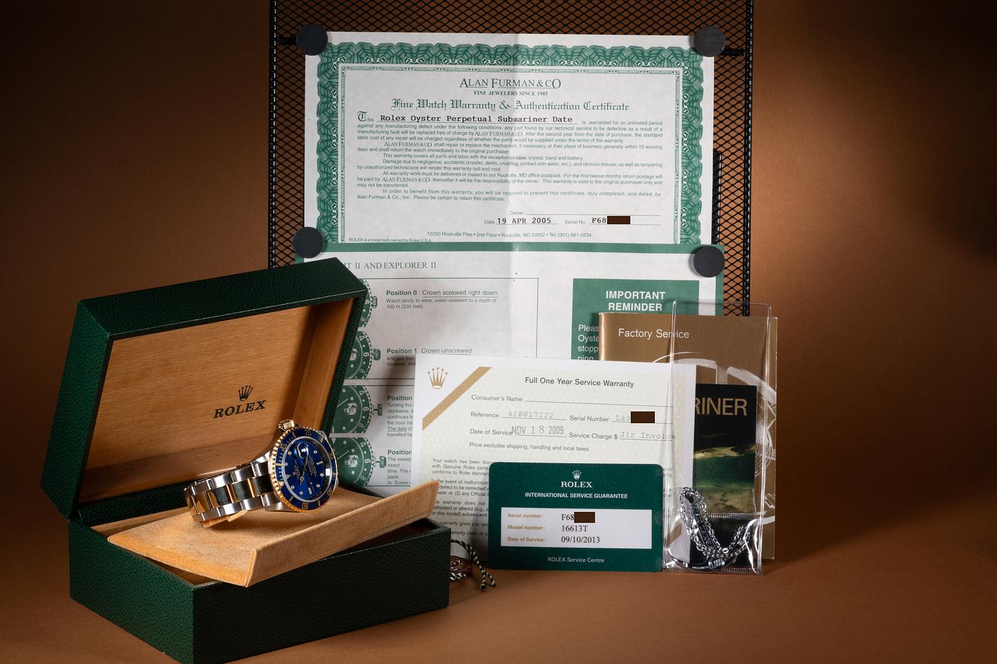 Accessories: Box and Rolex Service Papers.