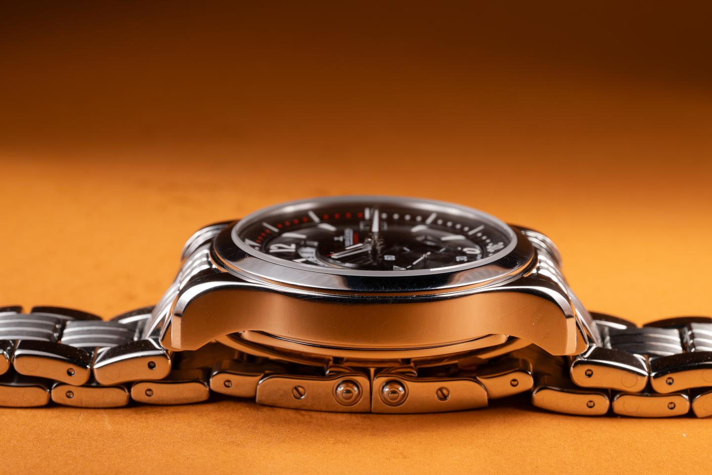 Case: The sharp 41.5mm case is excellent, showing only very light wear from use. The smooth stainless bezel is also in excellent condition, showing only very light wear from use.
