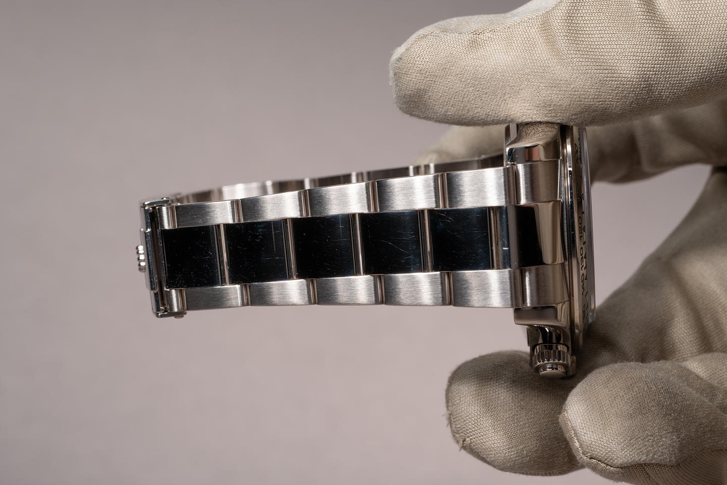 Bracelet: The 12.5 link 18K white gold Oyster bracelet is excellent showing no perceivable stretch. The clasp is stamped with a 2005 date code.