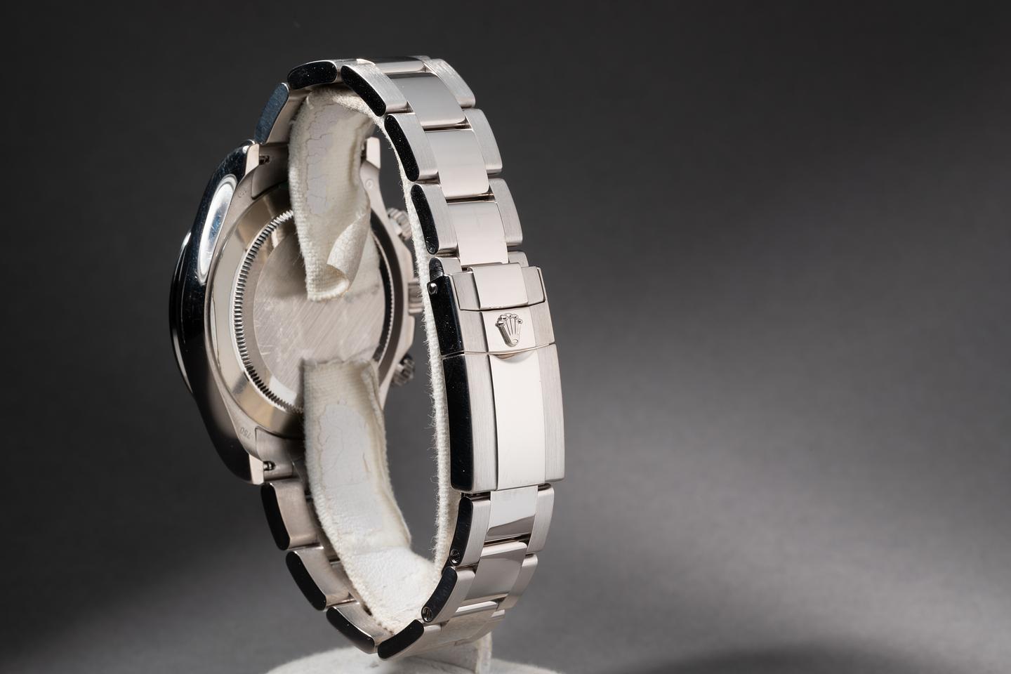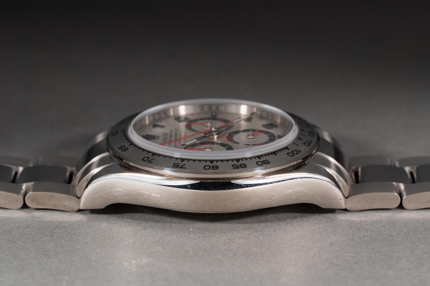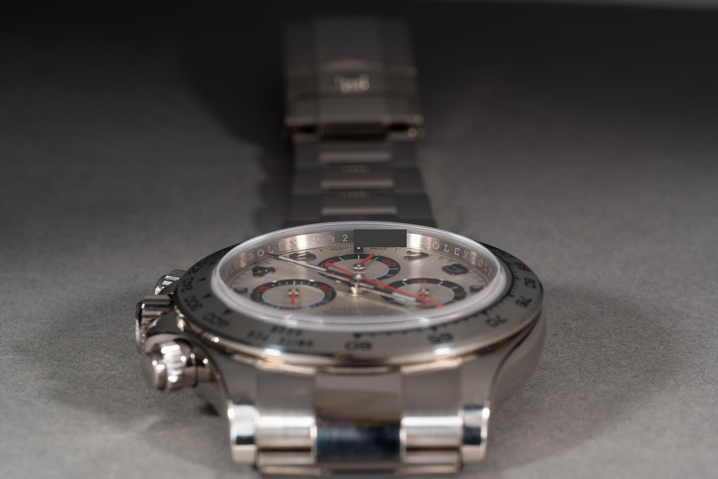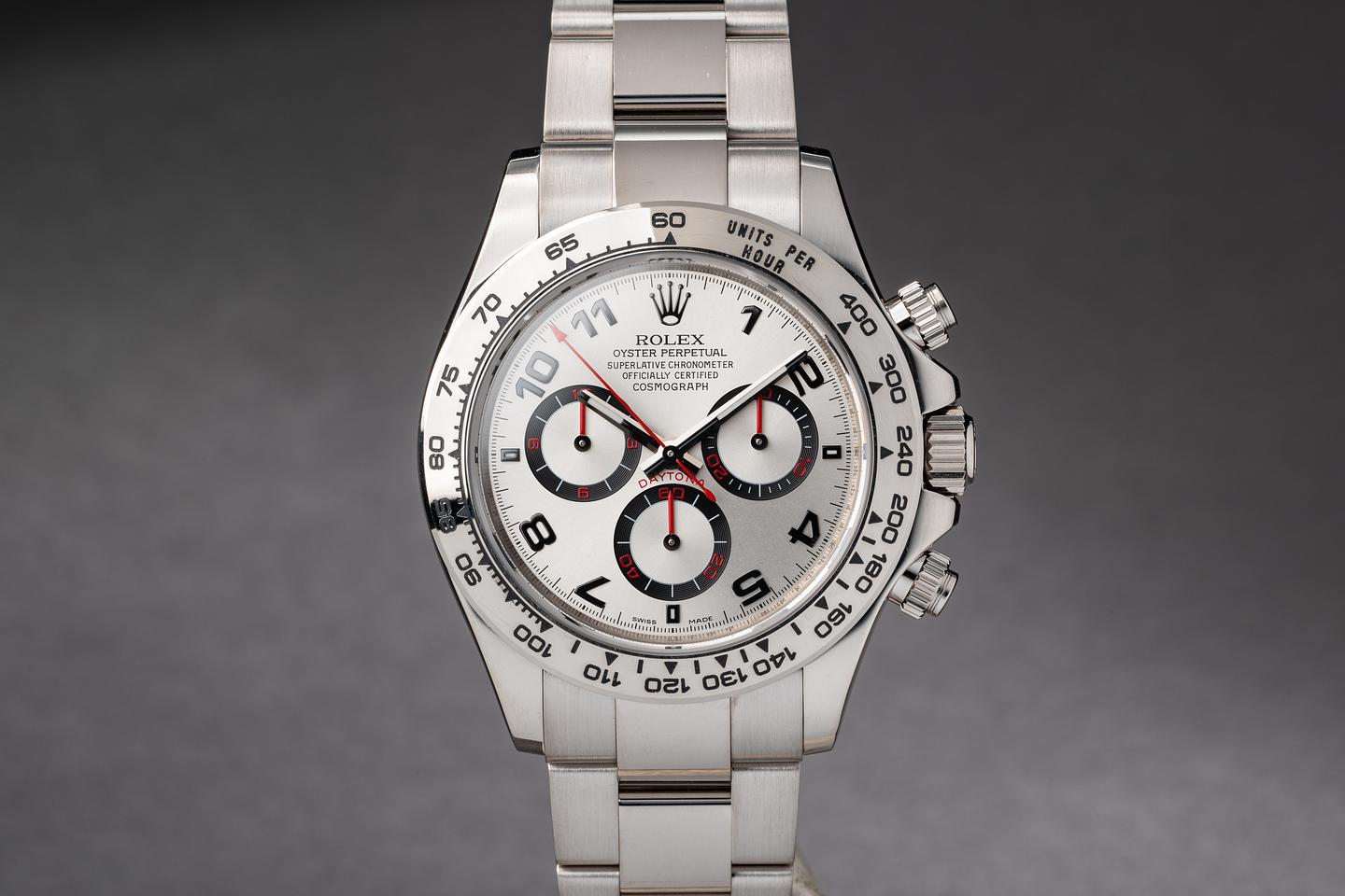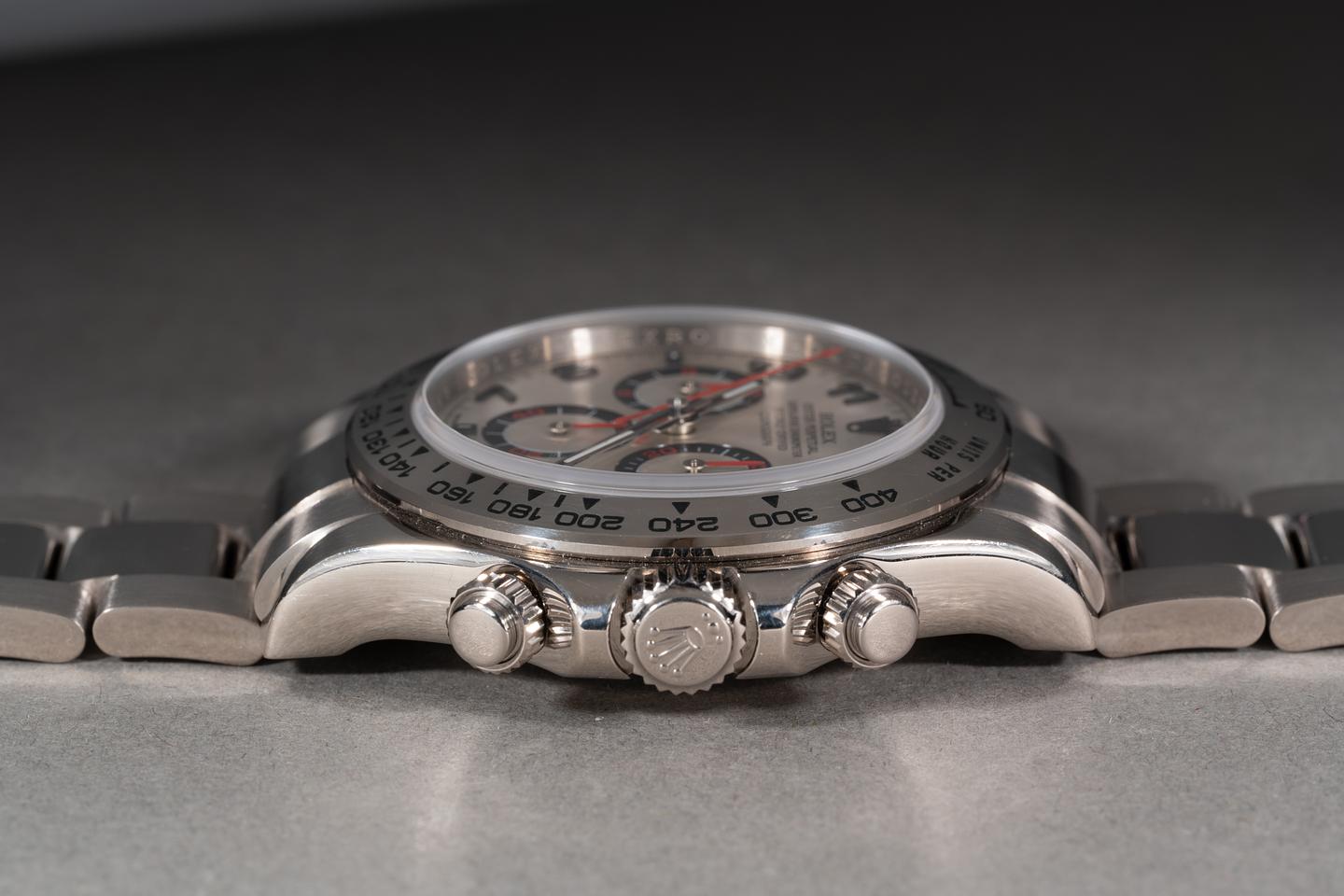 Case: The thick and even 18k white gold case is excellent showing some light wear from use. The 18k white gold bezel is also in excellent condition showing some light wear wear from use.