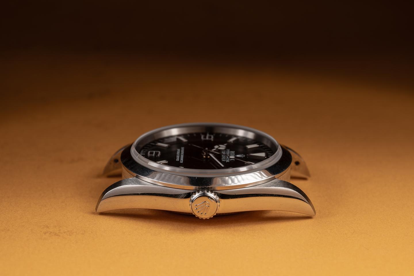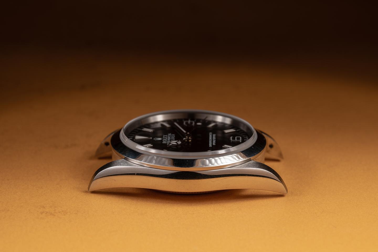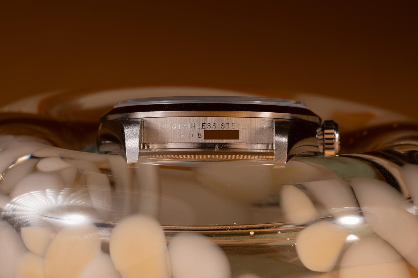 Case: The sharp 36mm case is excellent, showing only very light wear from use. The smooth stainless bezel is also in excellent condition, showing only very light wear.