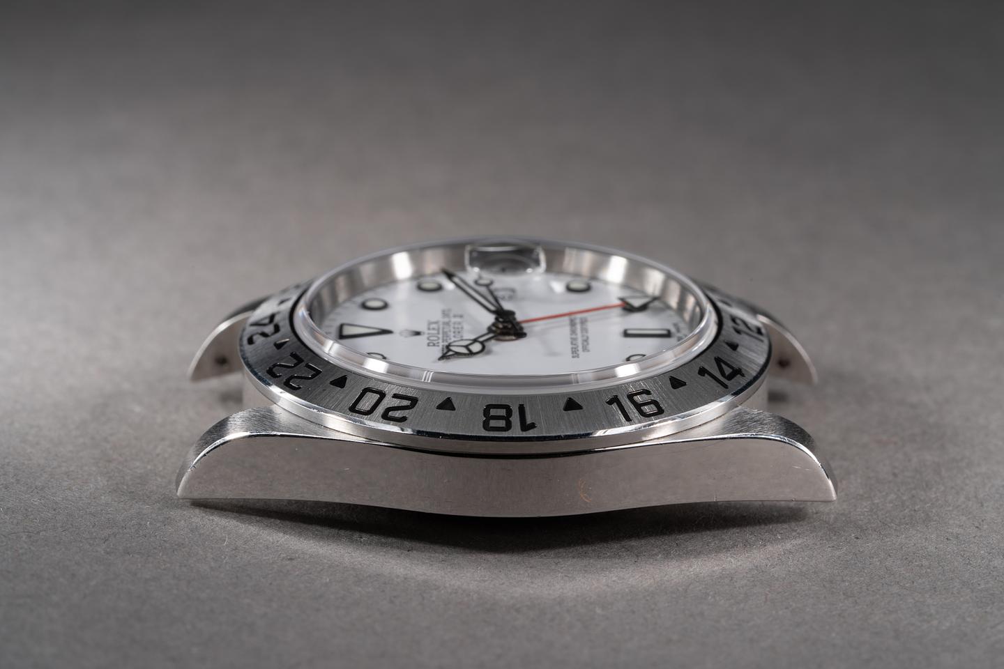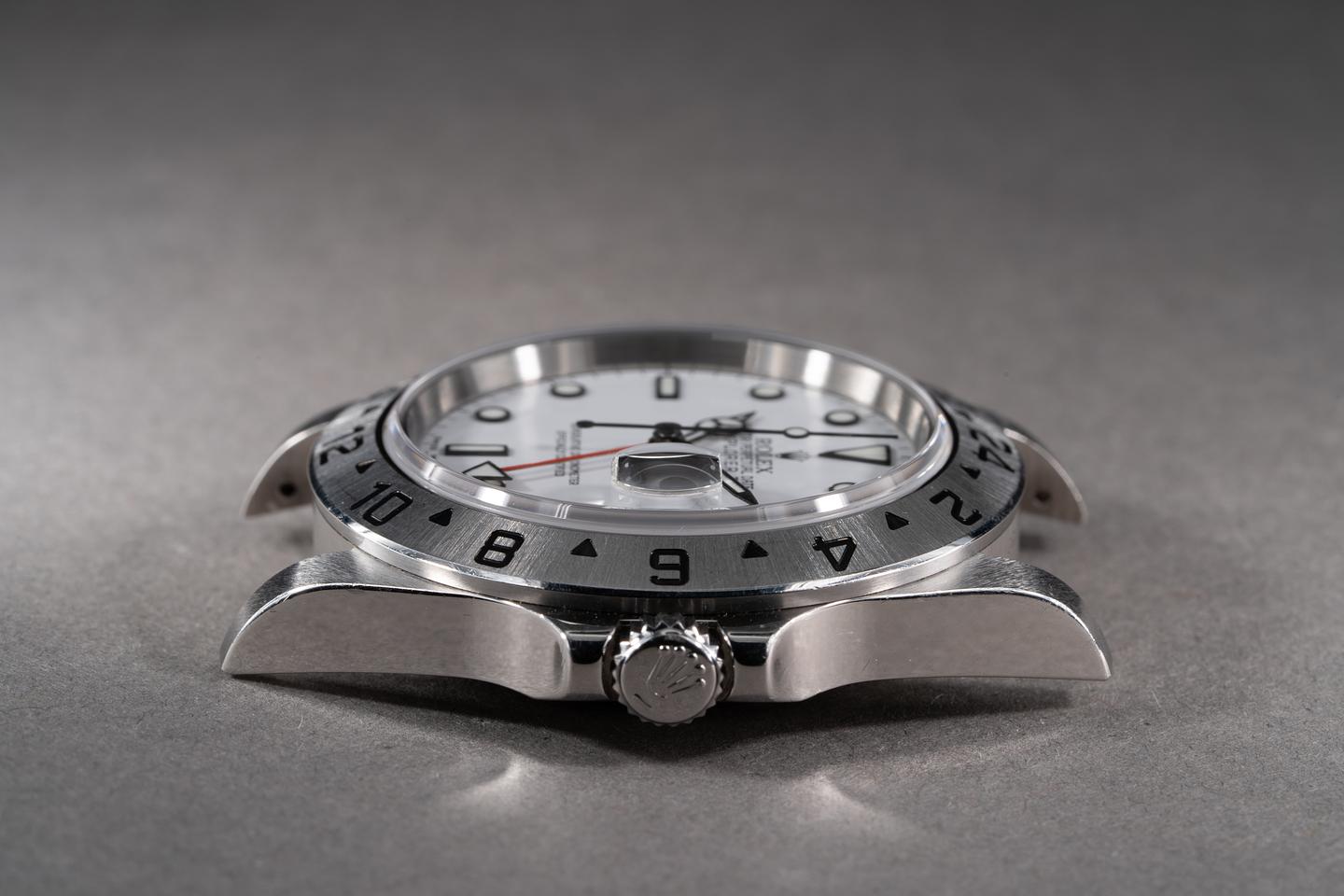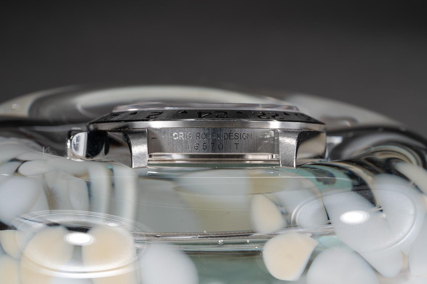 Case: The unpolished no holes case is excellent showing sharp, well-defined factory bevels and only light wear from use. The unpolished bezel is also excellent showing a sharp well-defined sunburst finish.