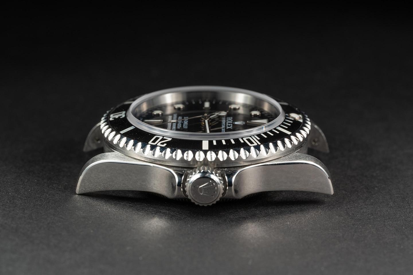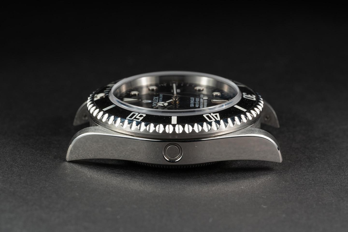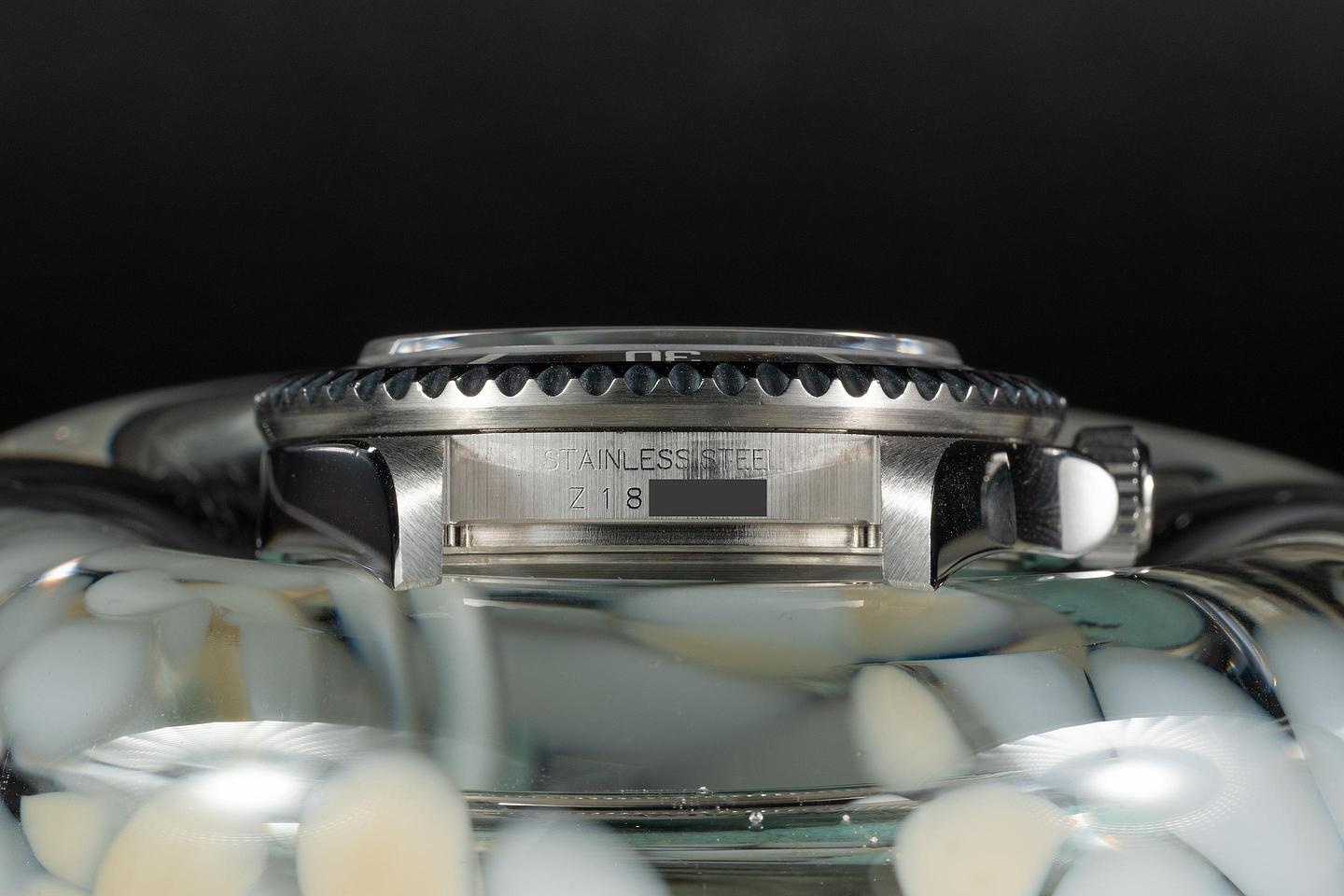 Case: The thick case is excellent showing sharp prominent bevels and only very light wear from use. The black bezel insert is also in excellent condition showing only very light wear.