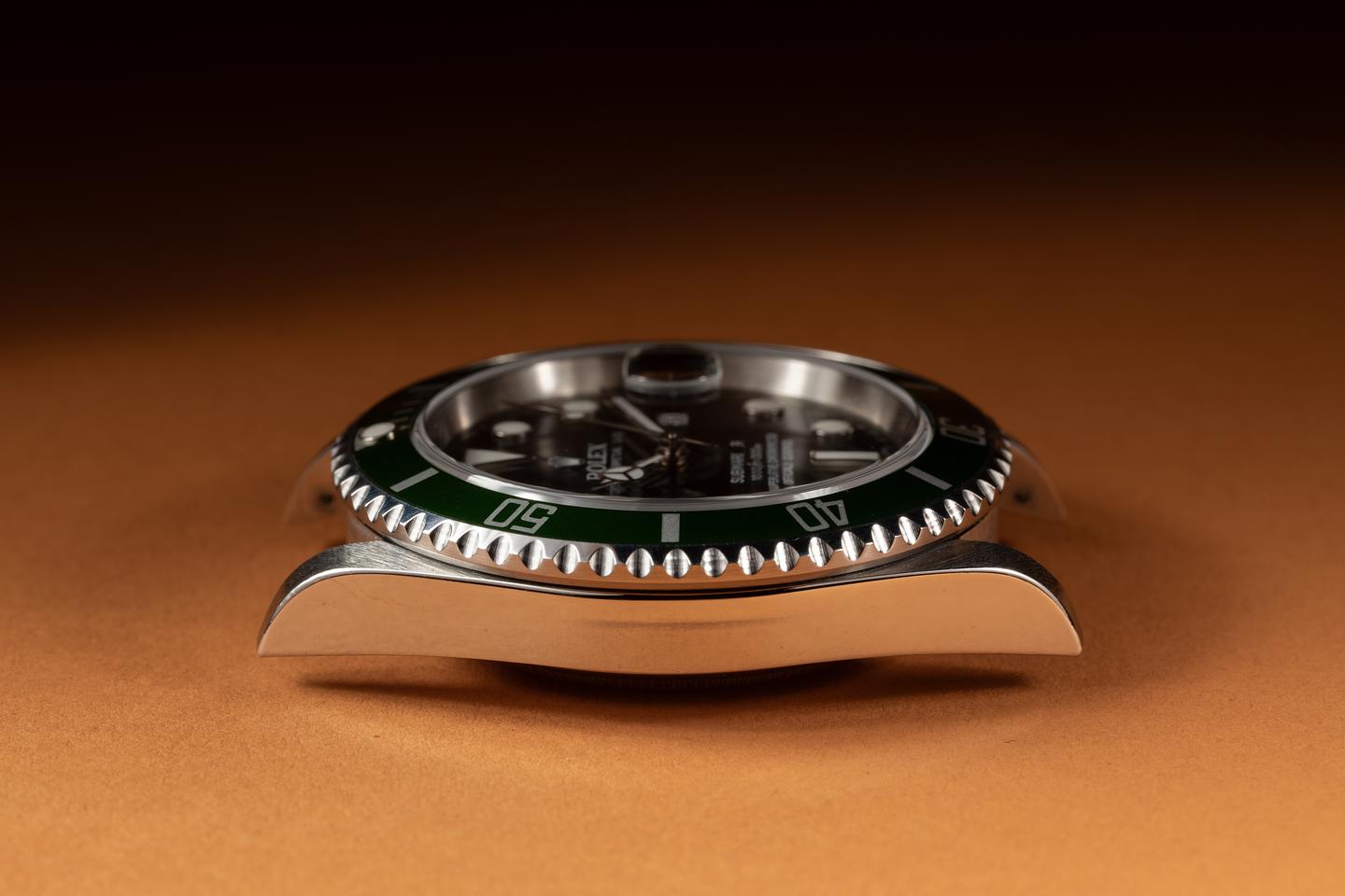 Case: The case is excellent showing only light wear from use. The green bezel insert is also in excellent condition showing only very light wear from use.