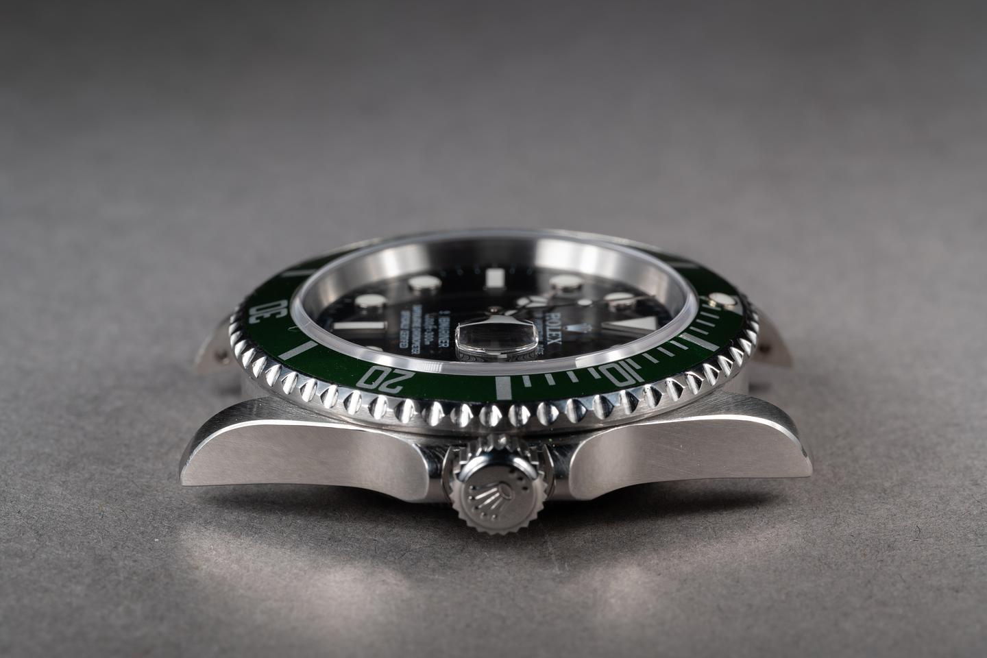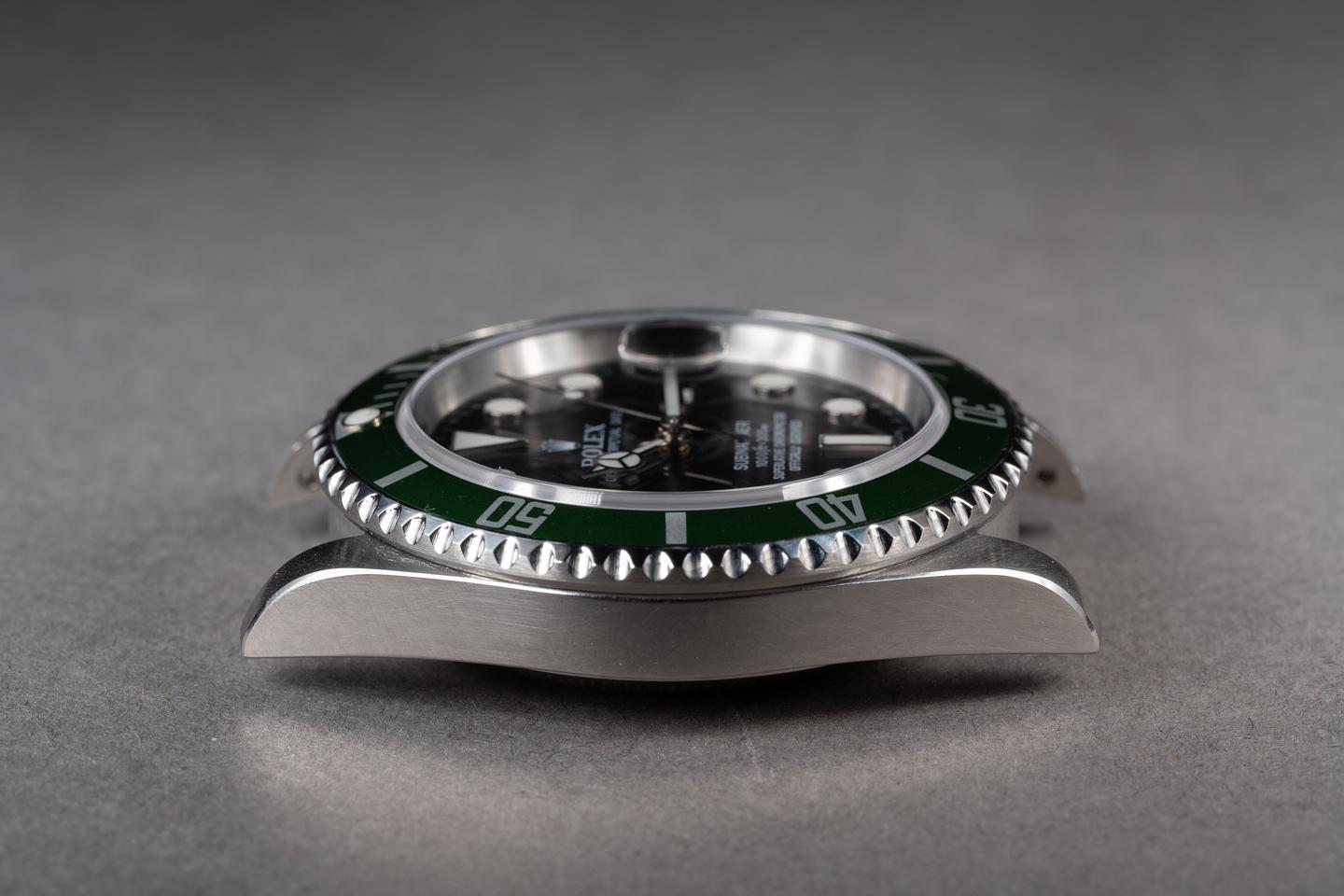 Case: The case is excellent showing sharp bevels and only very light wear. The green bezel insert is also in excellent condition showing only very light wear.