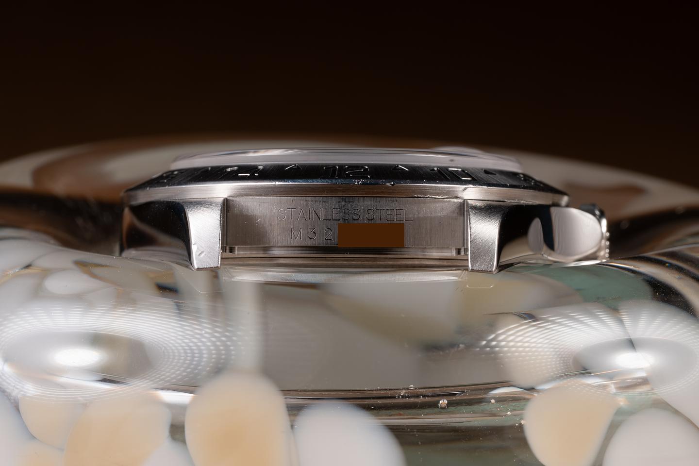 Case: The no-holes case is excellent, showing some light wear from use. The stainless bezel is also in excellent condition, showing some light wear from use. This watch has the updated 3186 movement.