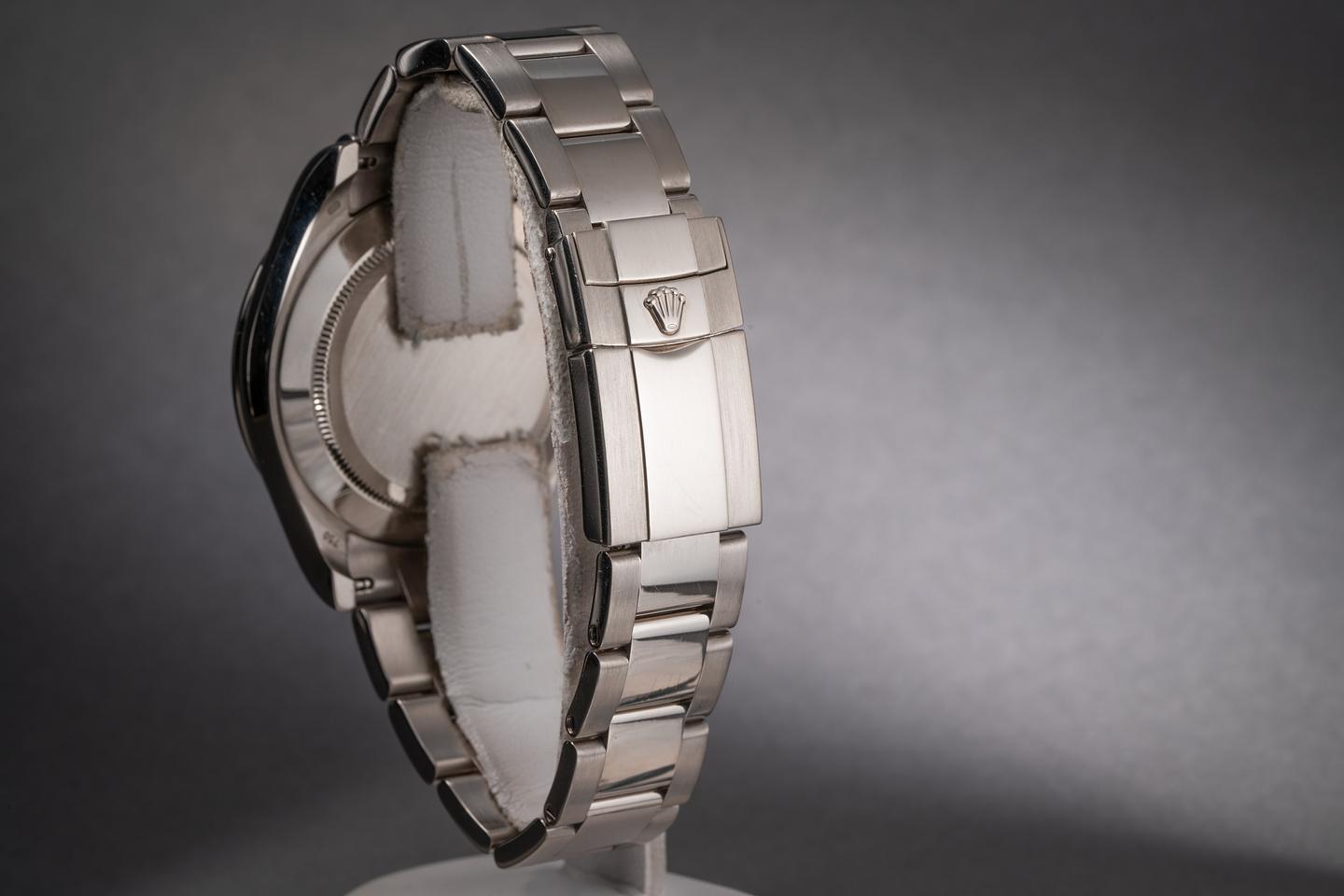 Bracelet: The 11.5 18k wg Oyster bracelet is excellent and shows only very light stretch. The clasp is stamped with a matching 2007 date code.
