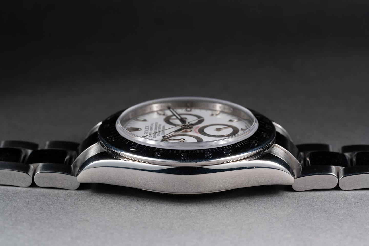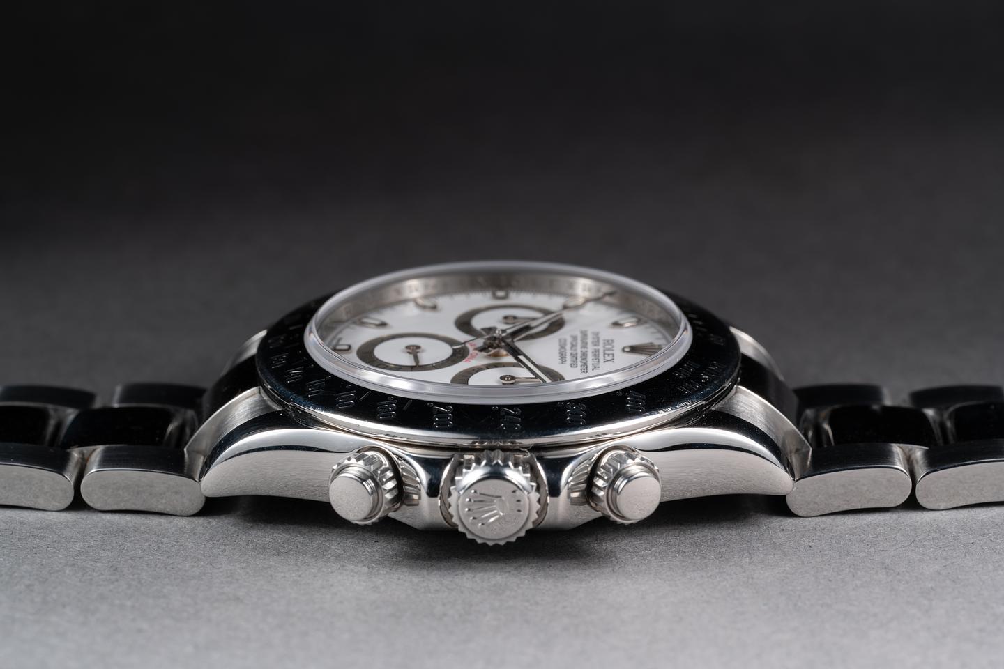 Dial: The glossy white dial is excellent showing no visible wear. The original factory hands are matching.