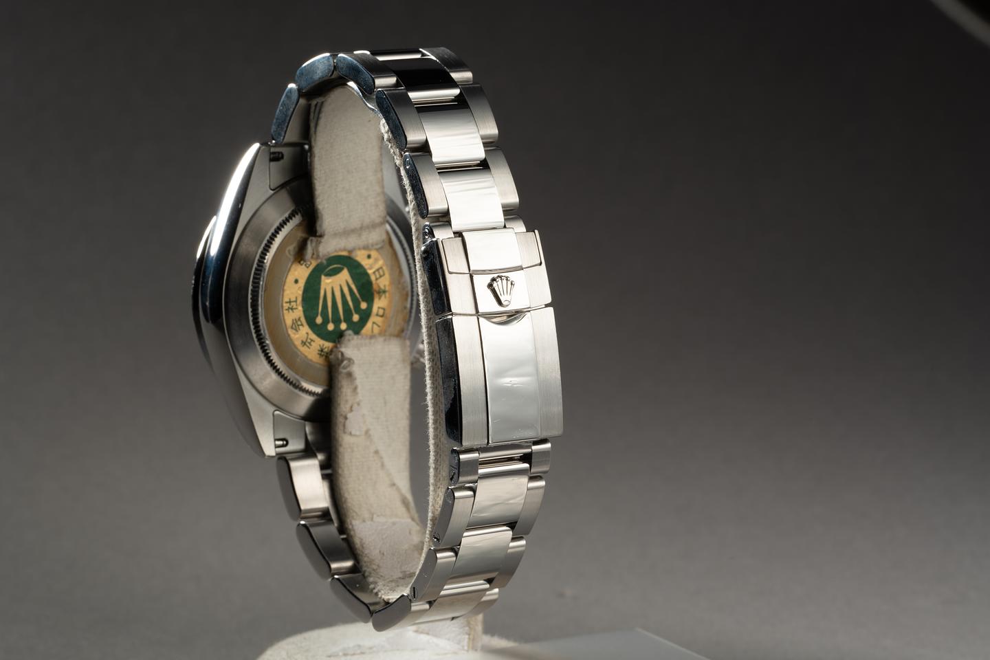 Bracelet: The 11.5 Oyster bracelet is excellent showing only very light stretch for its age. The clasp is stamped with a 2008 date code.