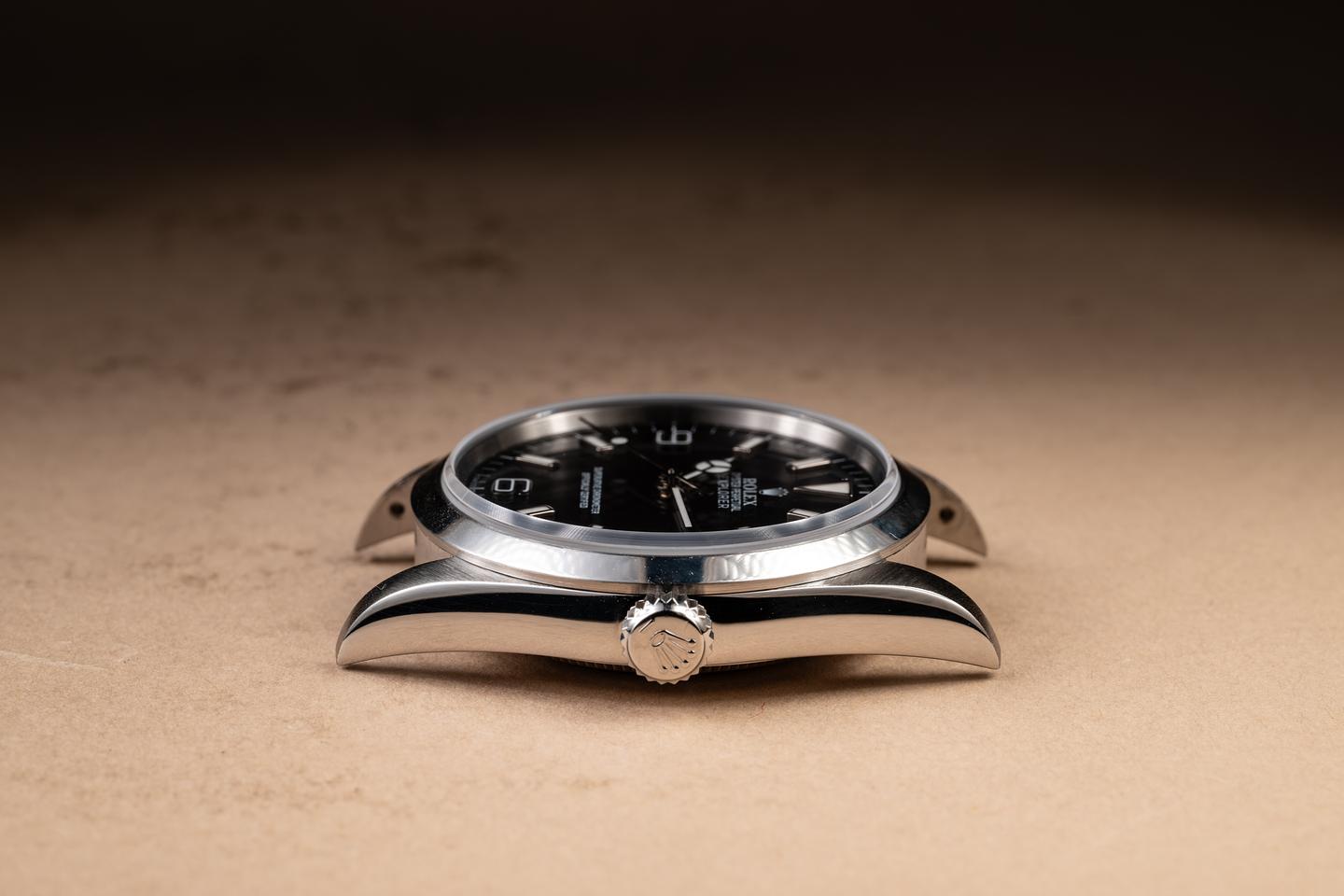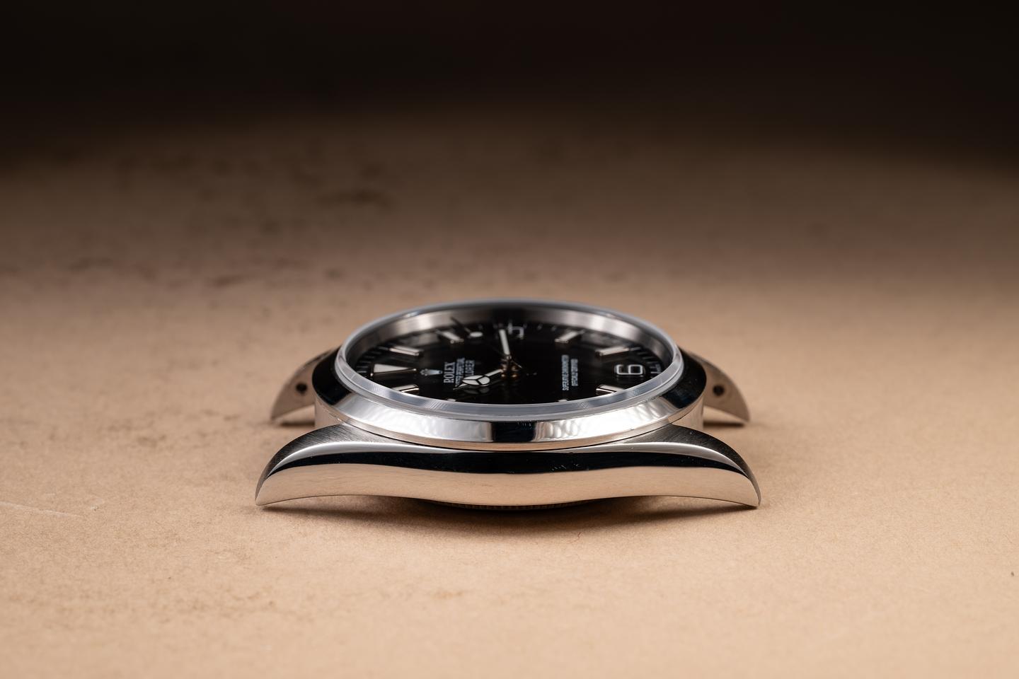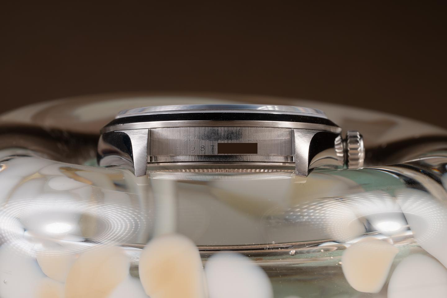 Case: The sharp 36mm case is excellent, showing only very light wear from use. The smooth stainless bezel is also in excellent condition, showing only light wear.