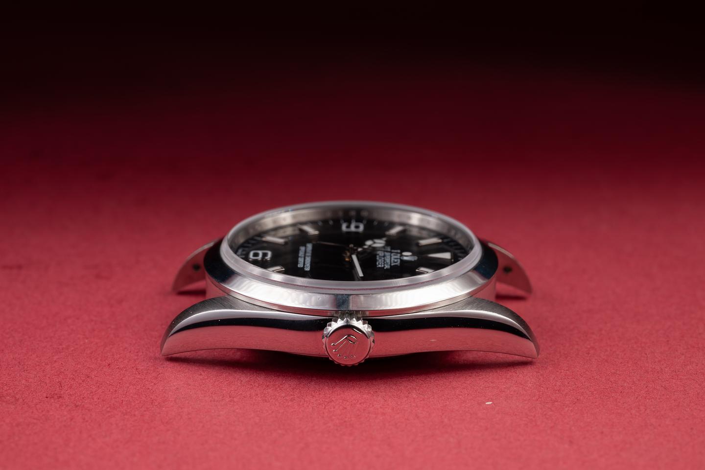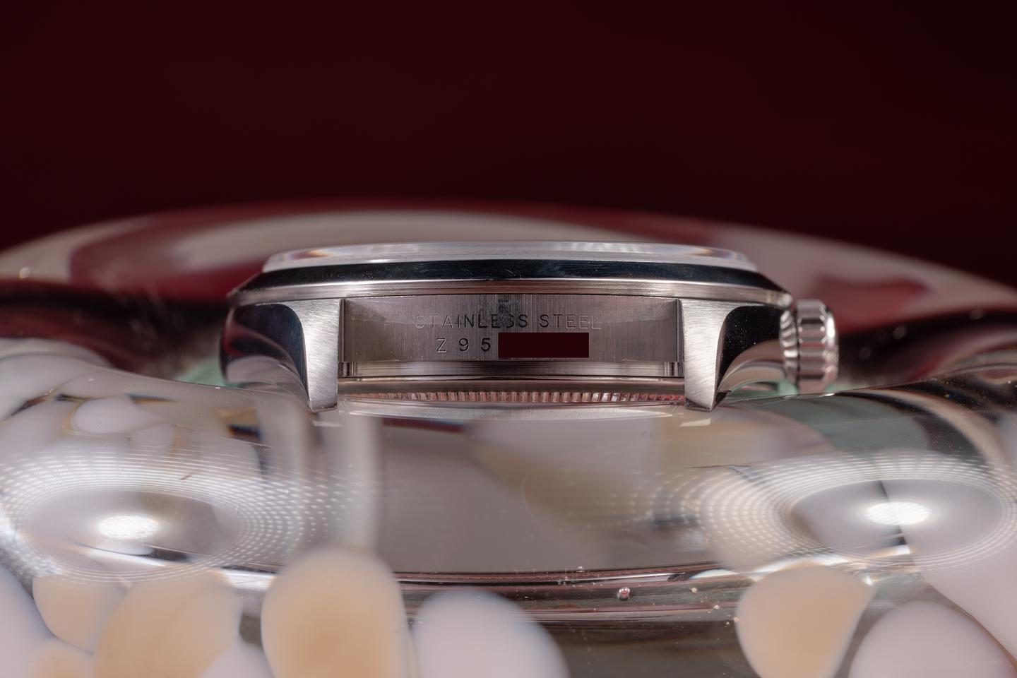 Case: The sharp 36mm case is excellent, showing only very light wear from use. The smooth stainless bezel is also in excellent condition, showing only light wear.