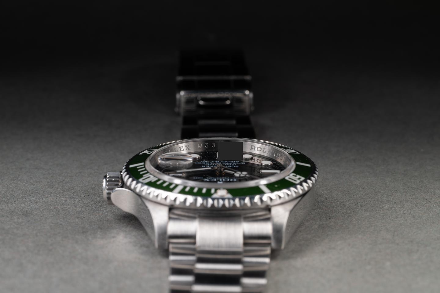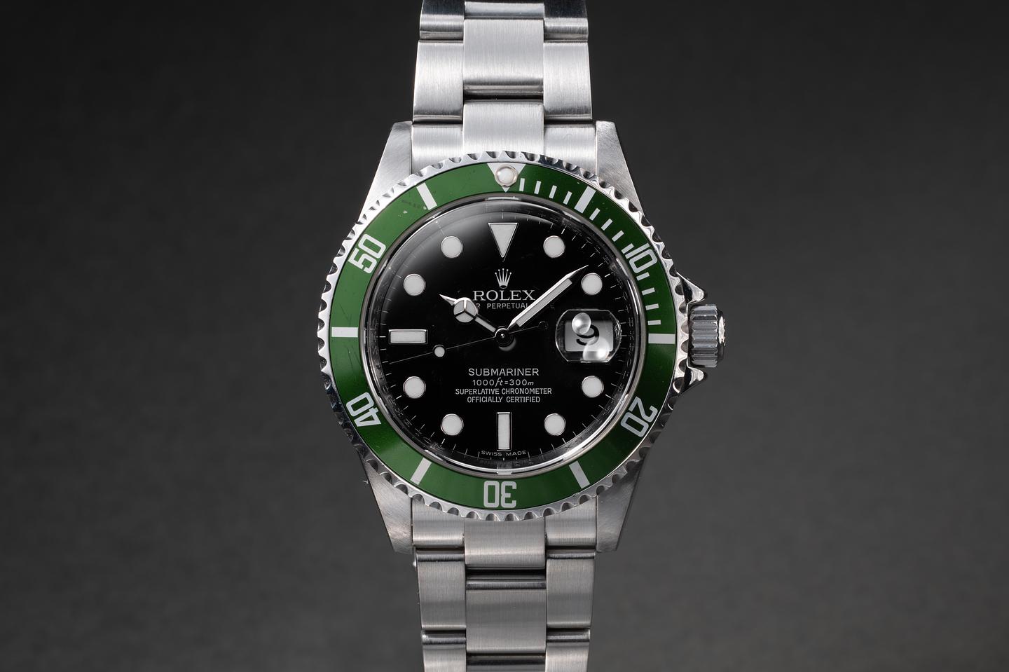 Case: The previously polished case is excellent, showing only light wear from use. The green bezel insert is also in excellent condition and has faded slightly from age.