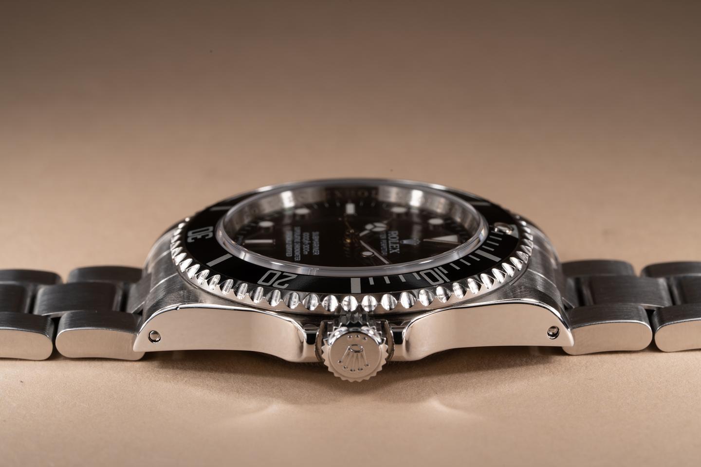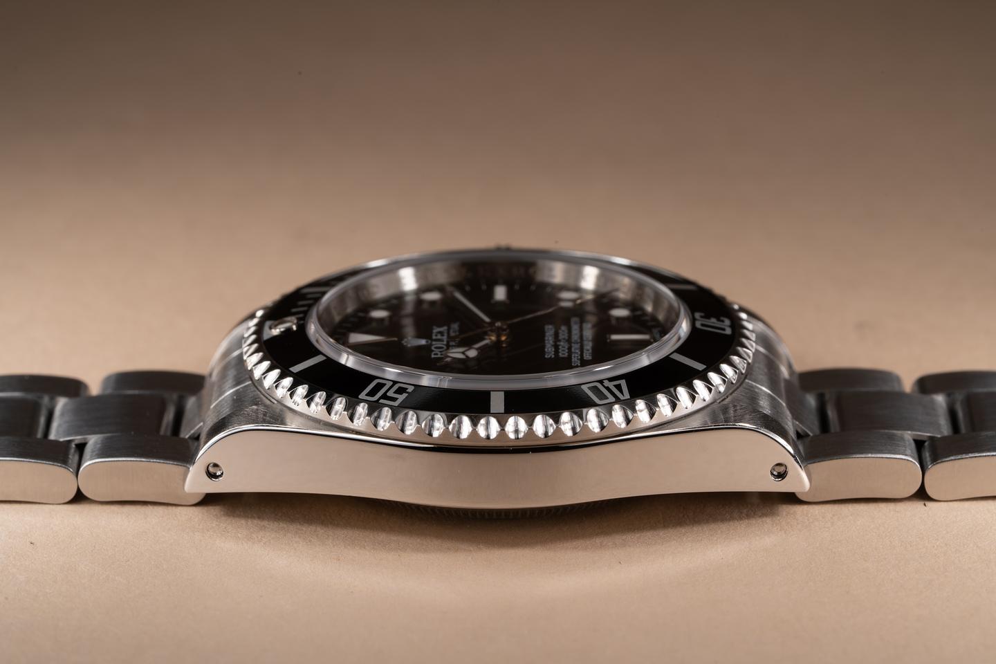 Case: The previously polished case is excellent showing prominent bevels and only very light wear from use. The black bezel insert is also in excellent condition showing only very light wear from use.