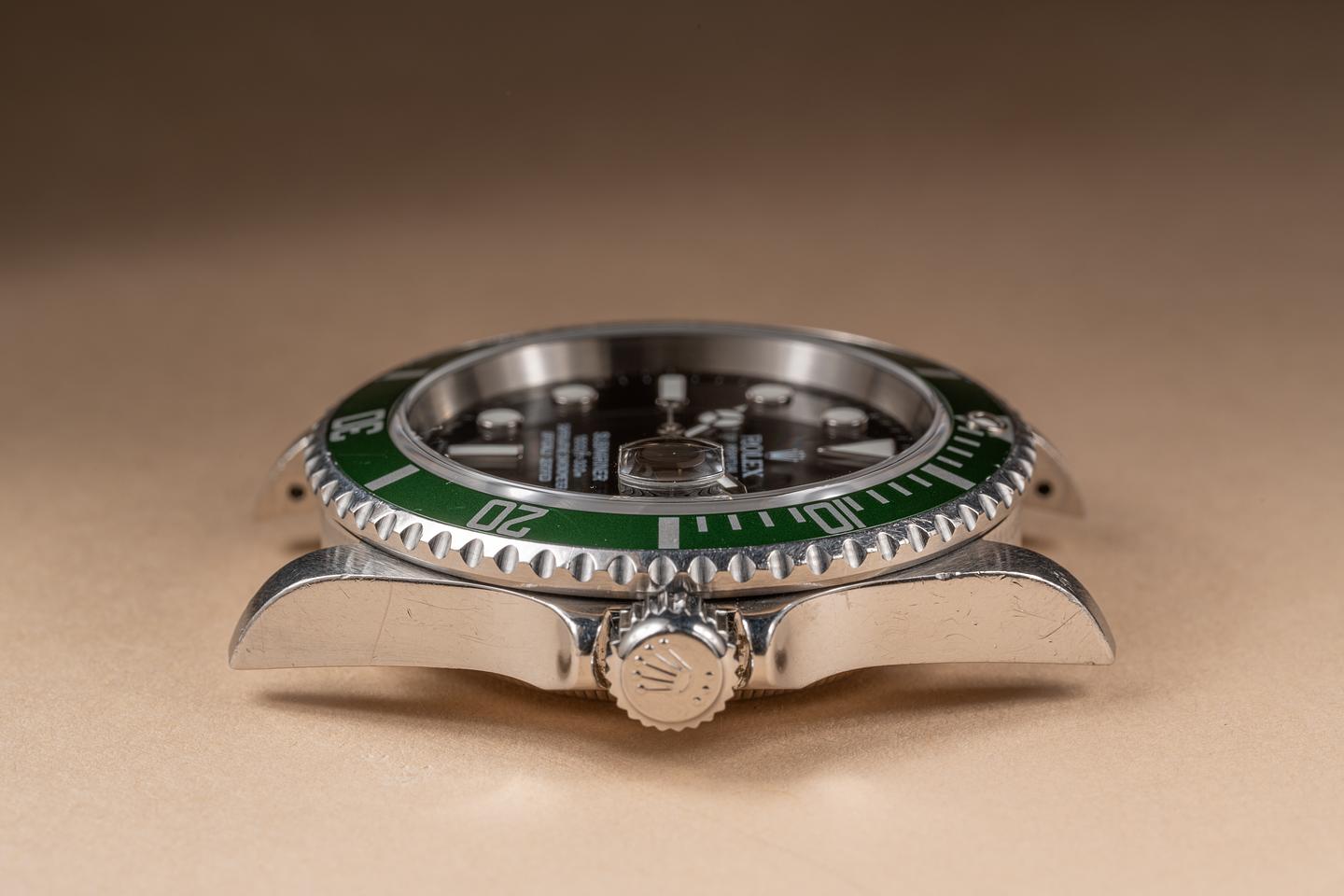 Case: The case appears to be unpolished showing average wear from use. The green bezel insert is also in excellent condition showing some light wear from use.