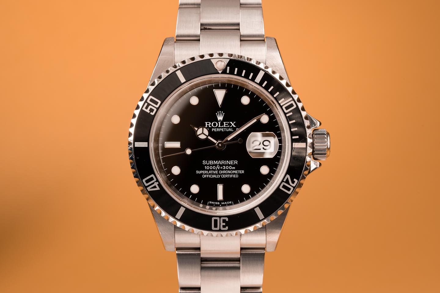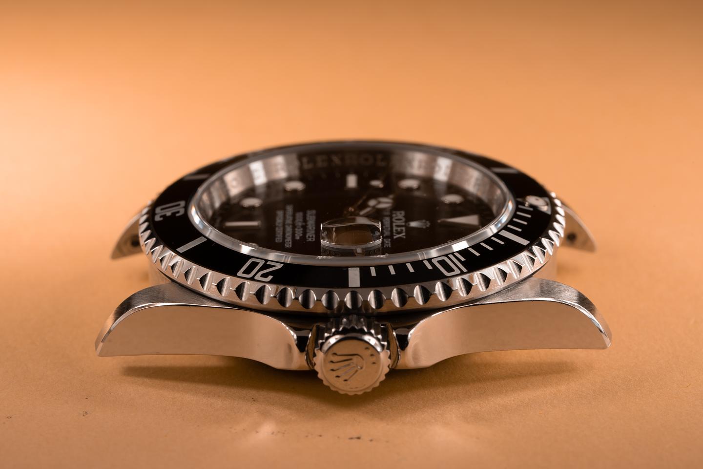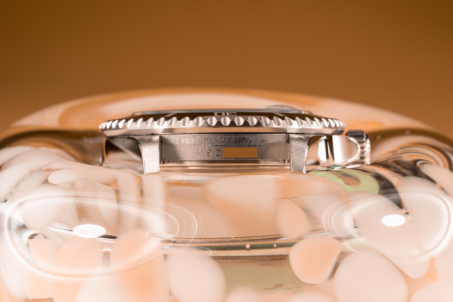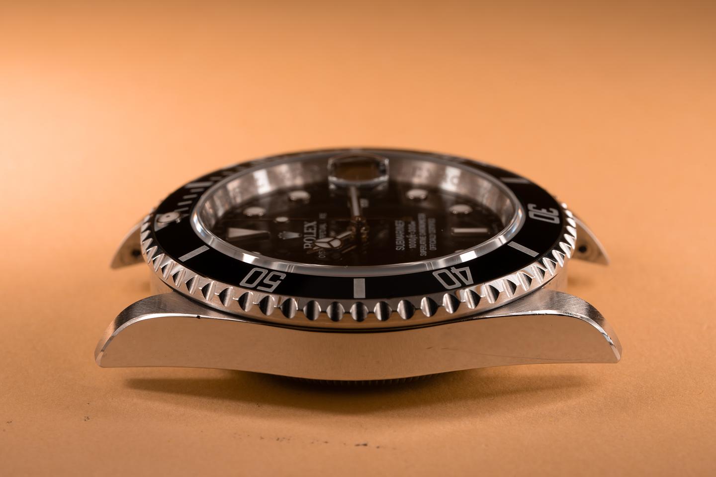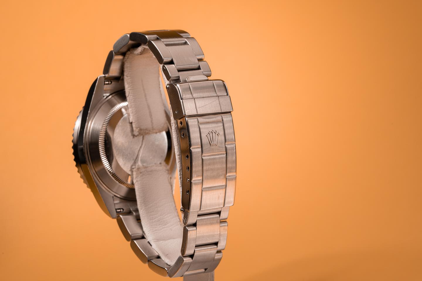 Case: The thick and even case is excellent showing prominent bevels and only light wear from use. The black bezel insert is also in excellent condition and shows some light wear from use.