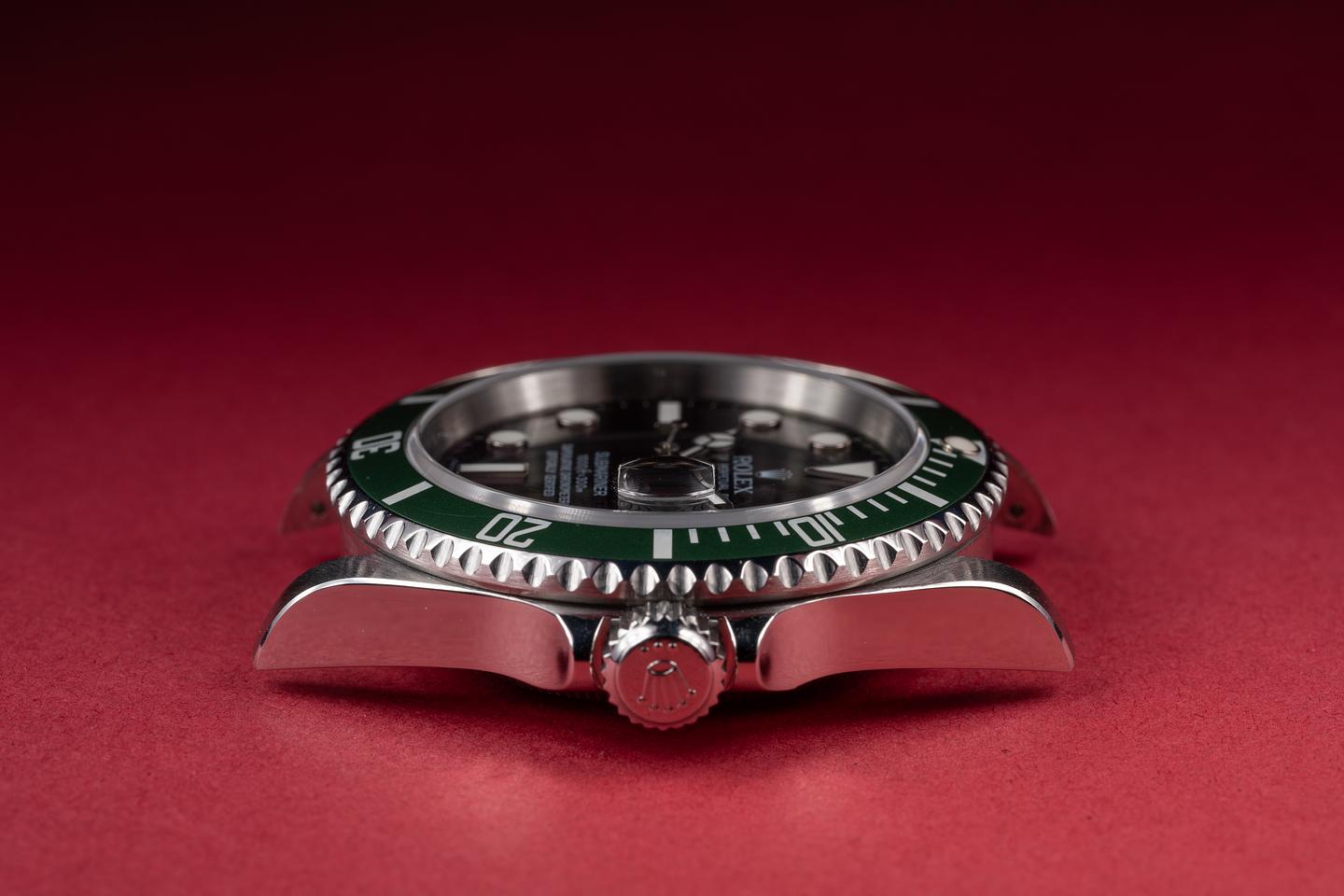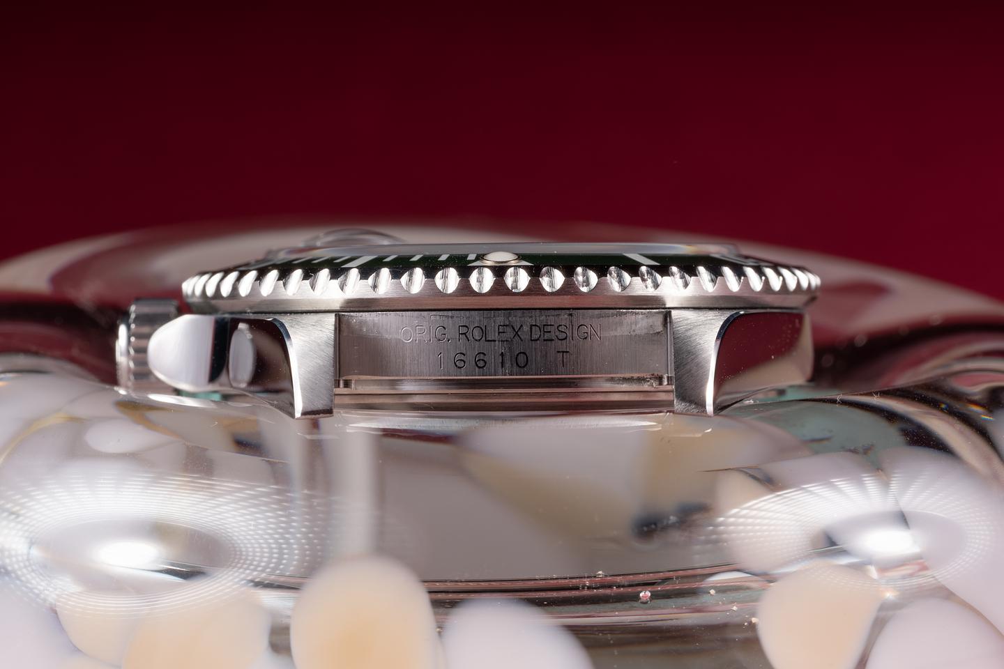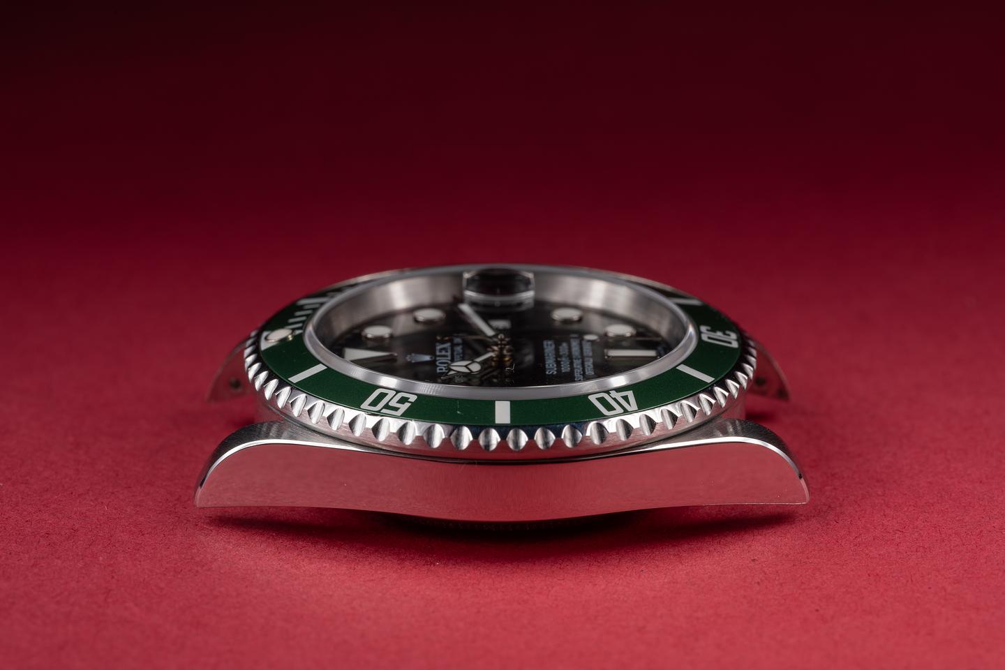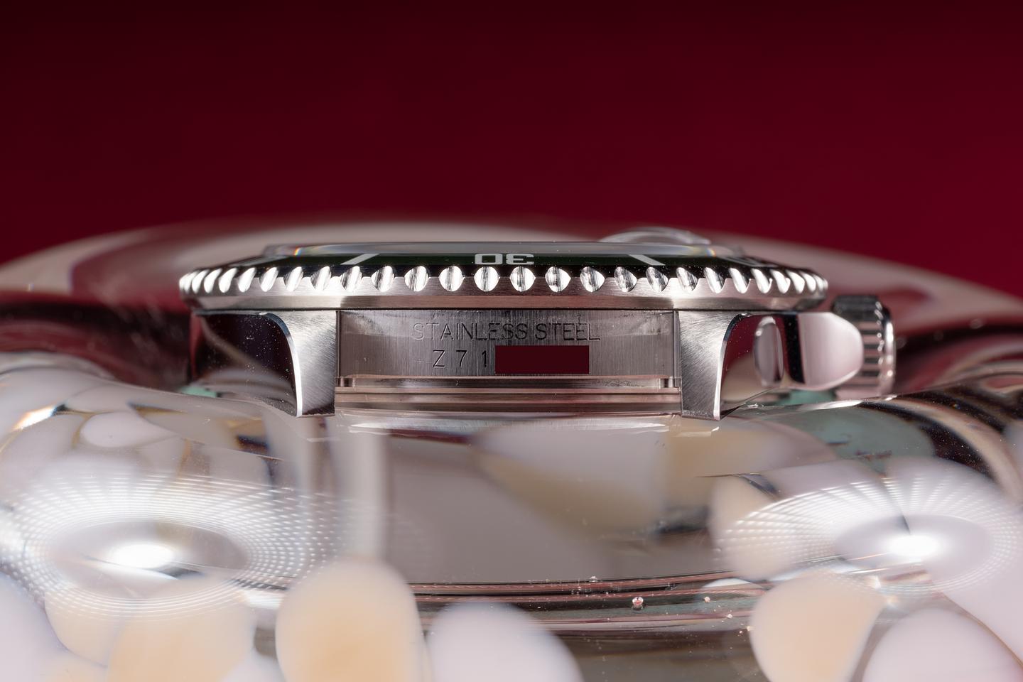 Case: The recently polished case is excellent showing only very light wear. The green bezel insert is also in excellent condition showing only very light wear from use.