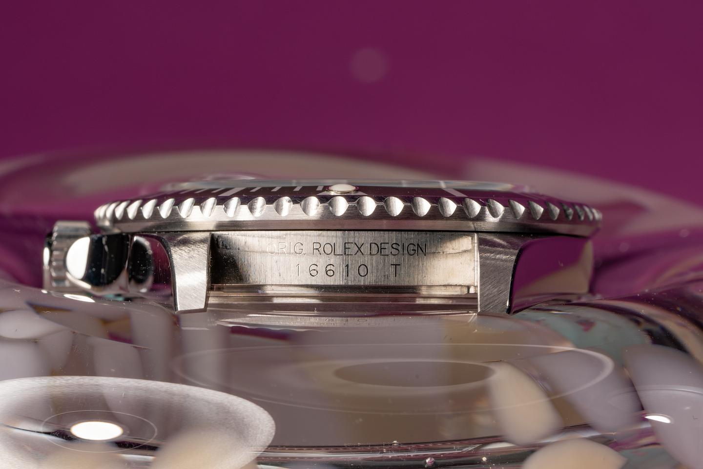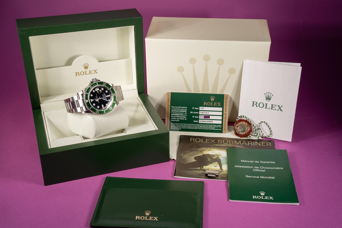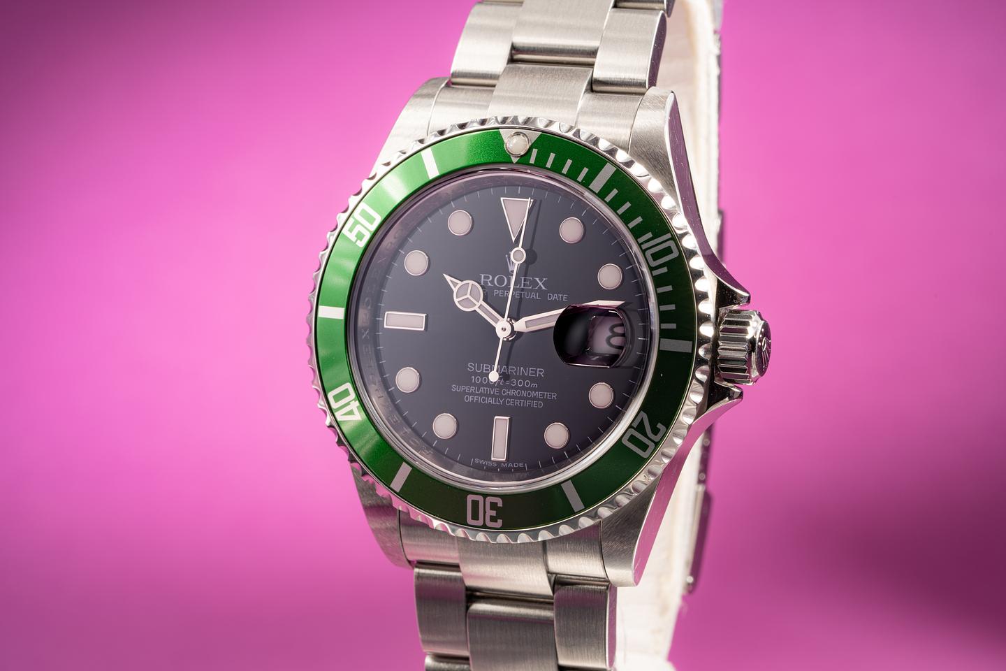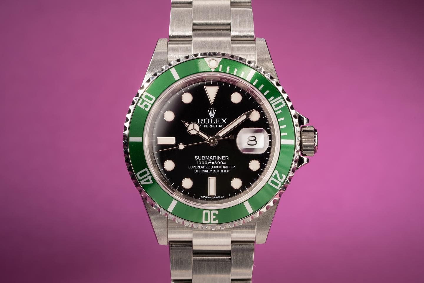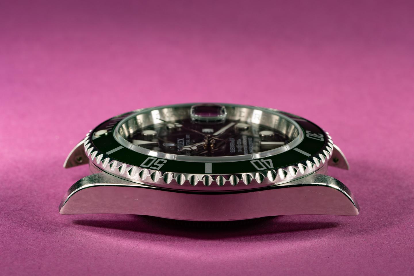 Case: Excellent unpolished case with sharp factory bevels that shows light wear for its age. The green bezel insert is excellent and shows little if any wear.
